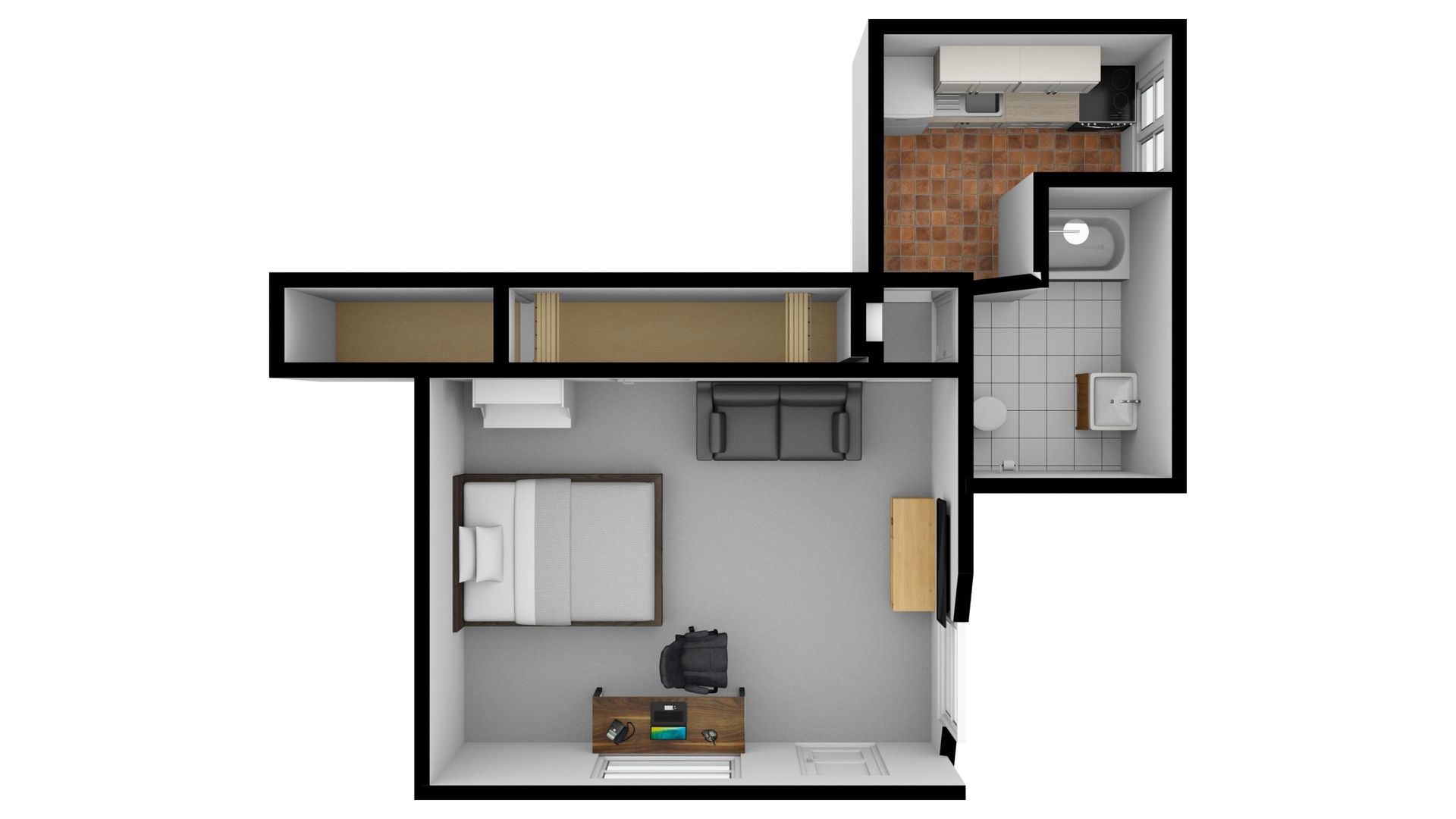 These charming studios each have their own unique floorplan. All units have built-in bookshelves, walk-in closets, and large windows.
