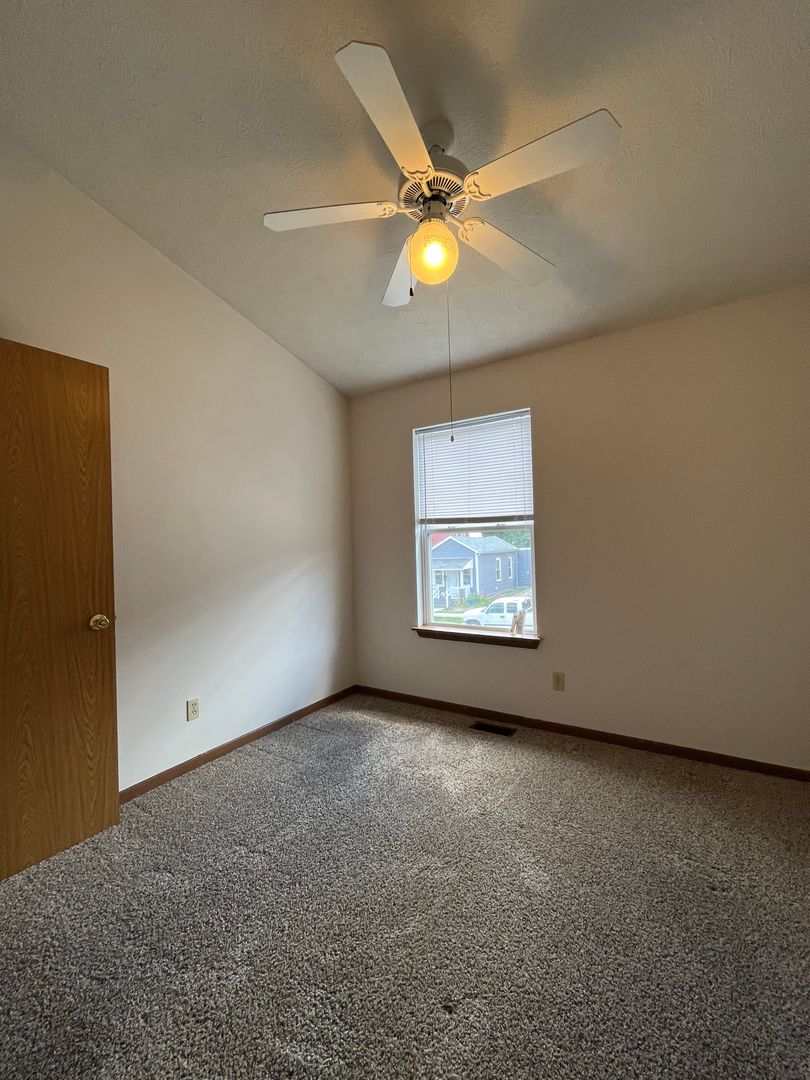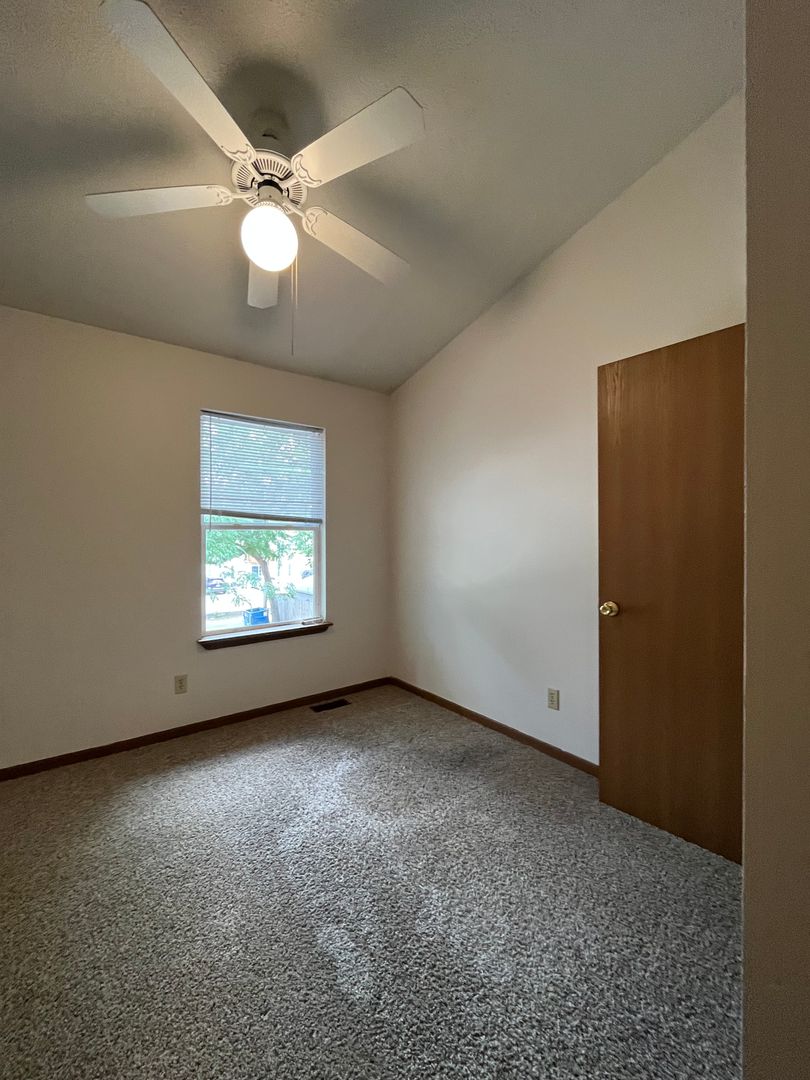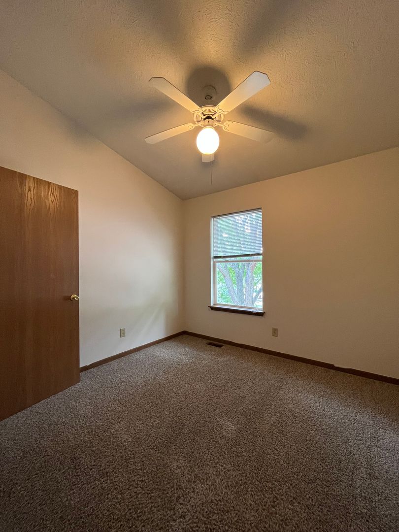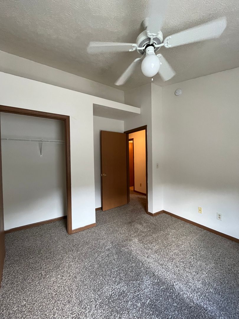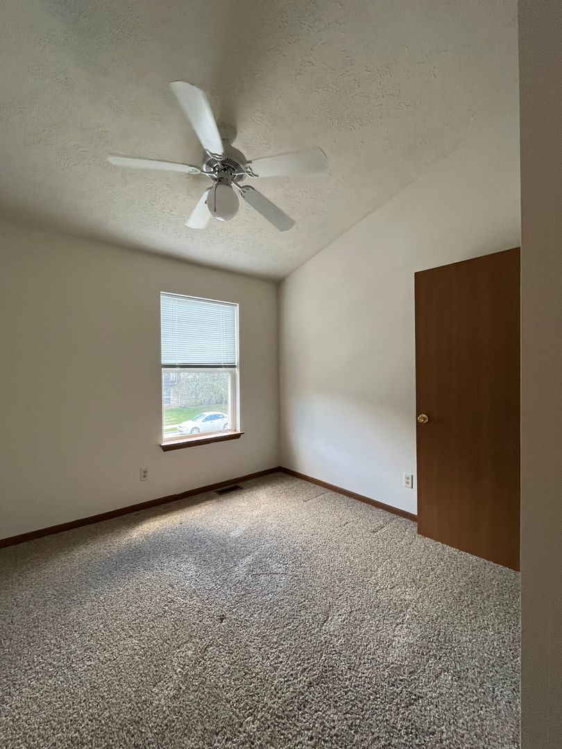 This unit features an open living room and kitchen as well as a 1/2 bath and laundry room on the main level. Upstairs has 4 equal sized bedrooms with lofted storage space and two full bathrooms. The unit features a covered front porch, central heating and air conditioning, and electronic keys. The kitchen is equipped with a fridge, stove, microwave, dishwasher, and garbage disposal.