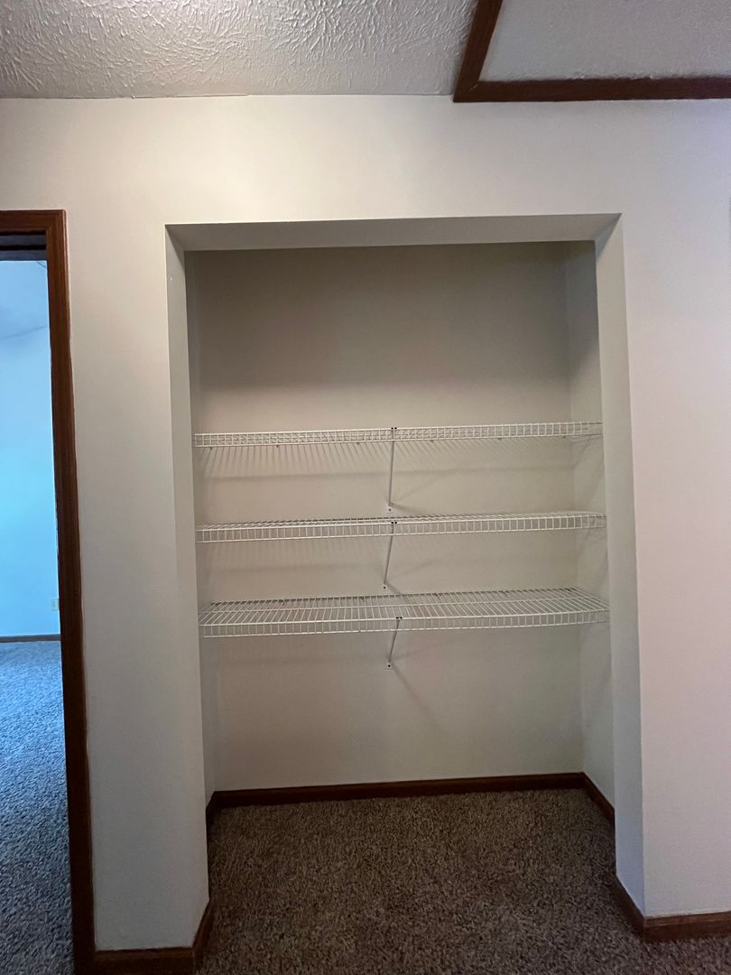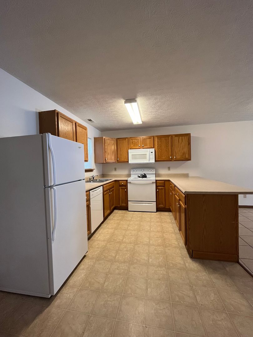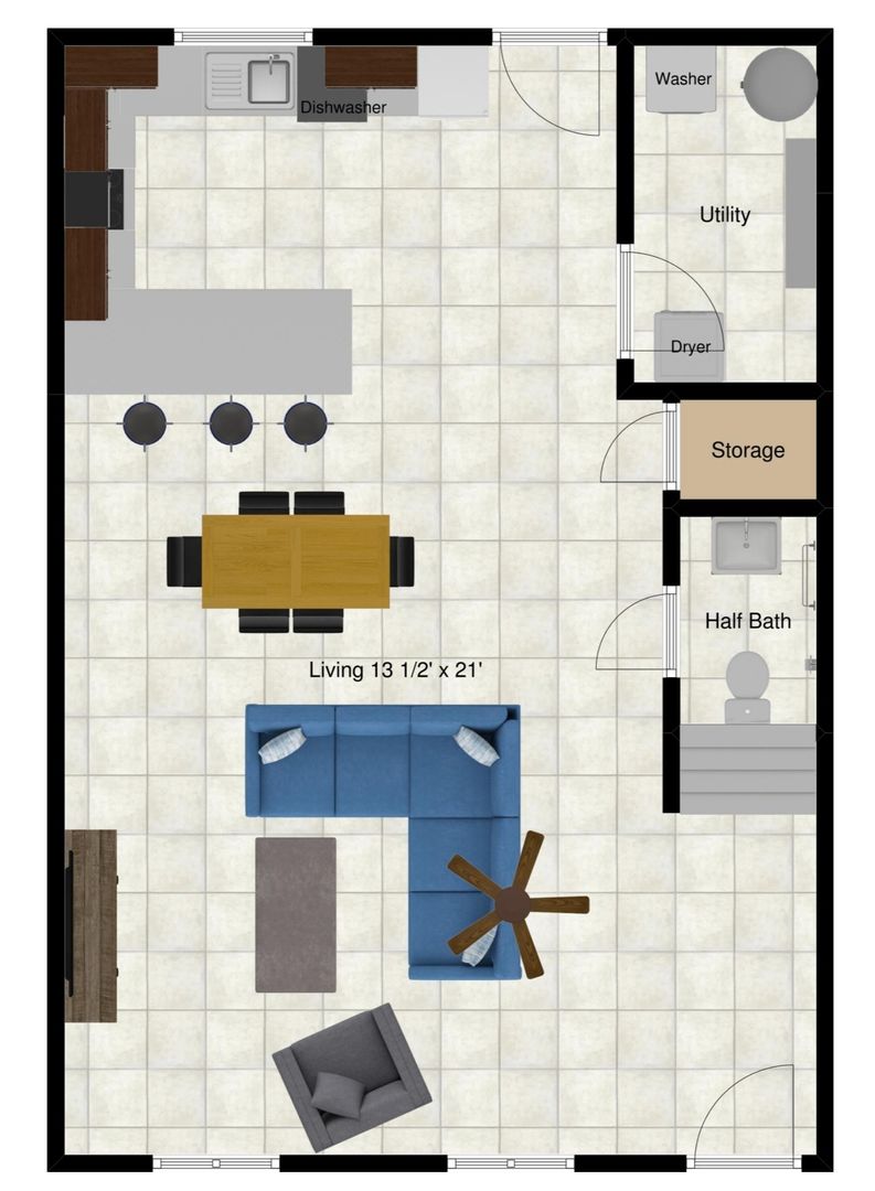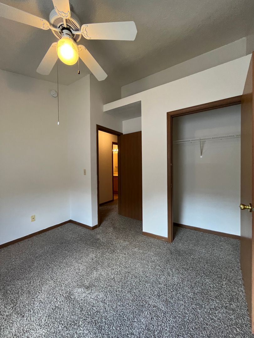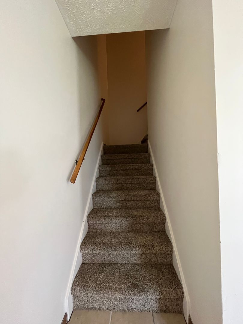 This unit features an open living room and kitchen as well as a 1/2 bath and laundry room on the main level. Upstairs has 4 equal sized bedrooms with lofted storage space and two full bathrooms. The unit features a covered front porch, central heating and air conditioning, and electronic keys. The kitchen is equipped with a fridge, stove, microwave, dishwasher, and garbage disposal.