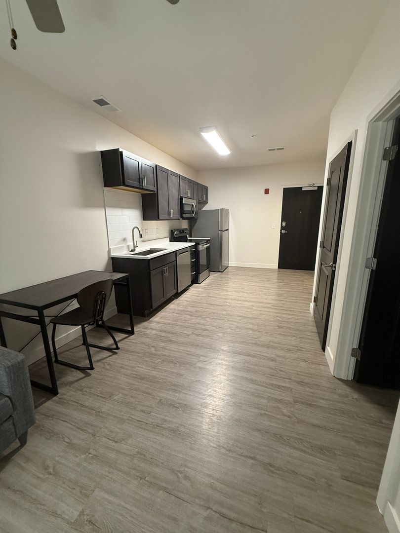 The new Monterey building has so much to offer! These apartments feature vinyl plank flooring, 9ft ceilings, LED light fixtures, in unit washer/dryer, and furnished options. Live close to campus, bars, restaurants, entertainment, and more! Apartments are equipped with a sofa, full bed, dresser, desk, desk chair, 50" smart TV, multi-purpose table and chairs. Kitchens are fully equipped with stainless steel appliances. Select units have covered balconies. Other property features include a garage parking, elevator, secured entry with video surveillance, and trash chute. Utilities covered in rent are internet, water, sewer, and trash.