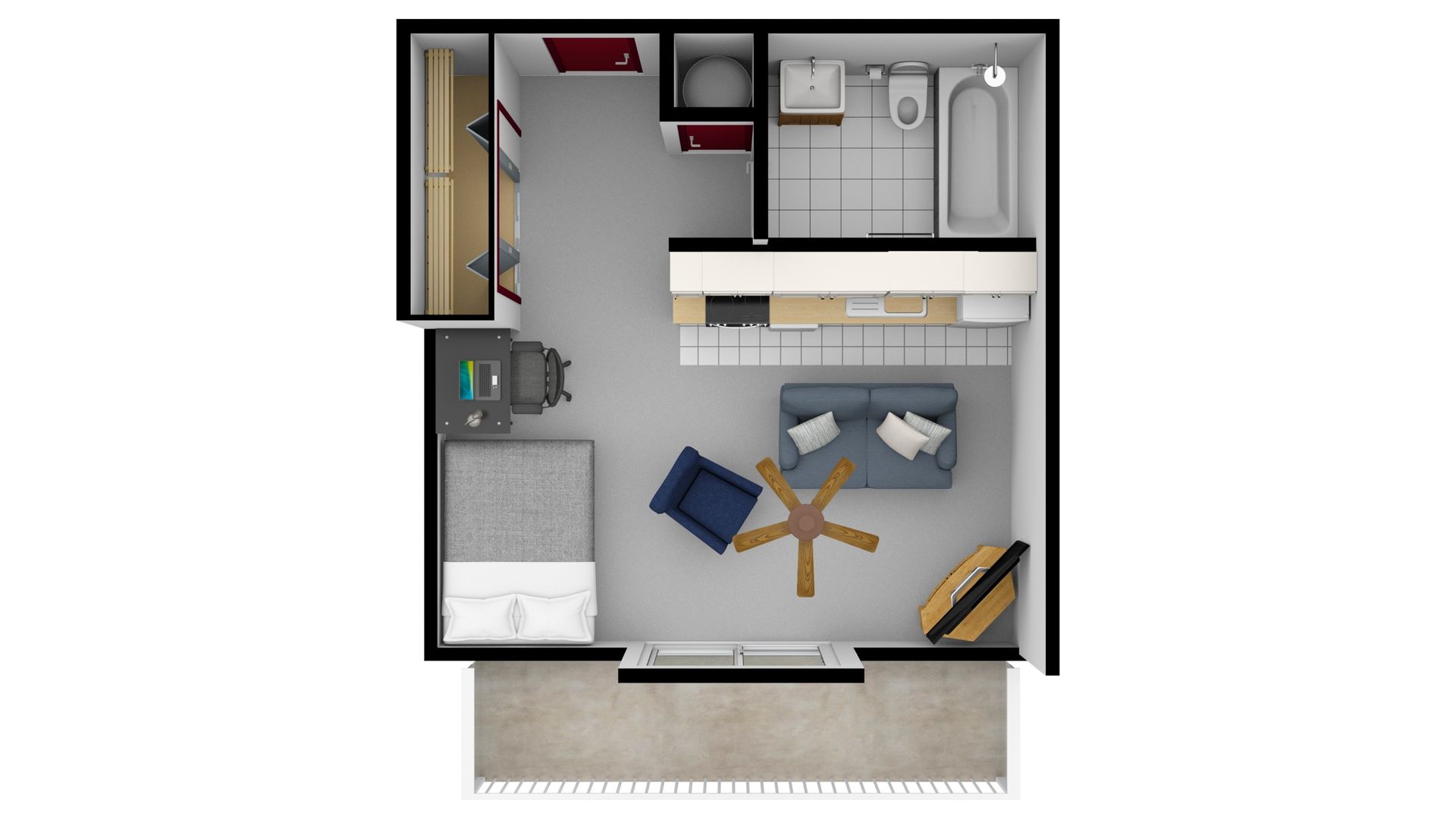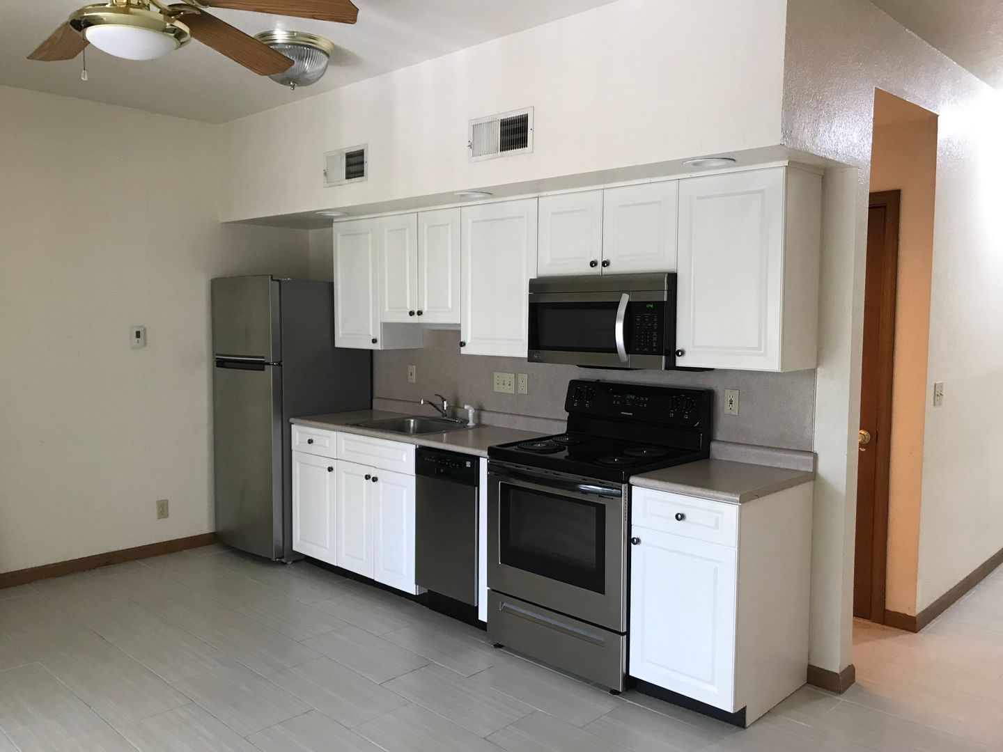 This unit features a well-designed kitchen with a full size stove, fridge, dishwasher, and built in microwave! It is spacious, has a full size bath, and a balcony!