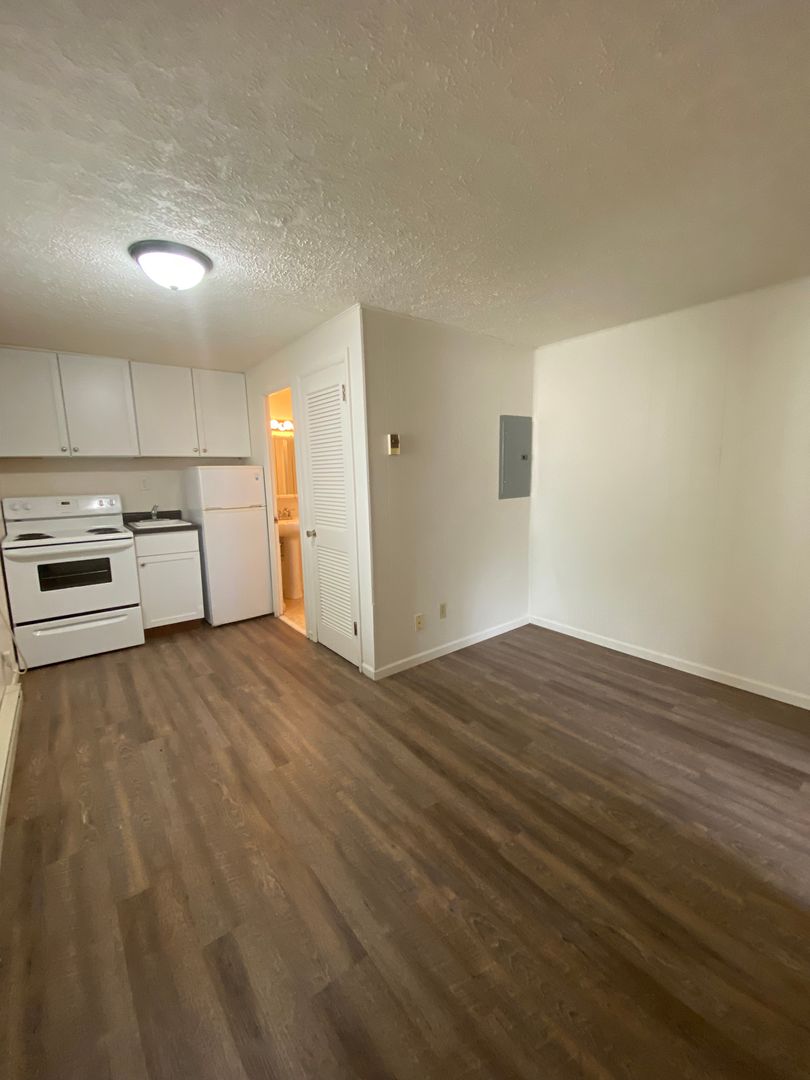 These 1 bed 1 bath apartments have a built-in dresser in the bedroom flanked by a closet on either side. Comfortable living room with air-conditioning and a fully equipped kitchen. Laundry room available just across the street.