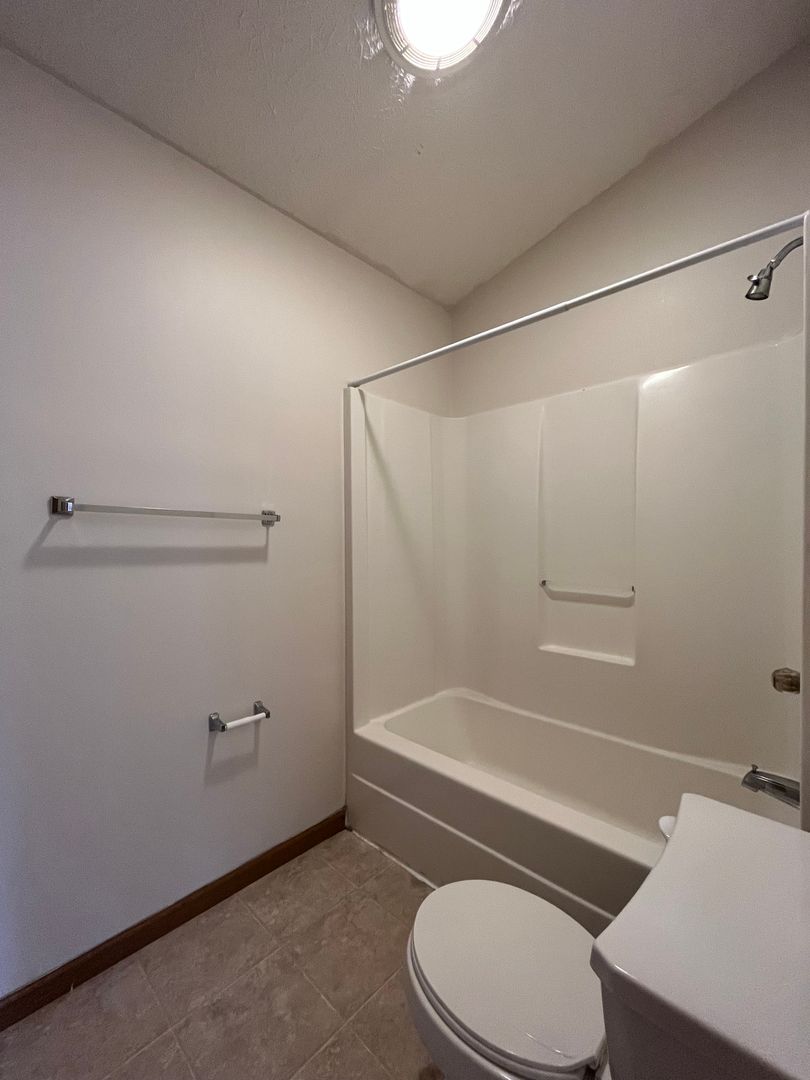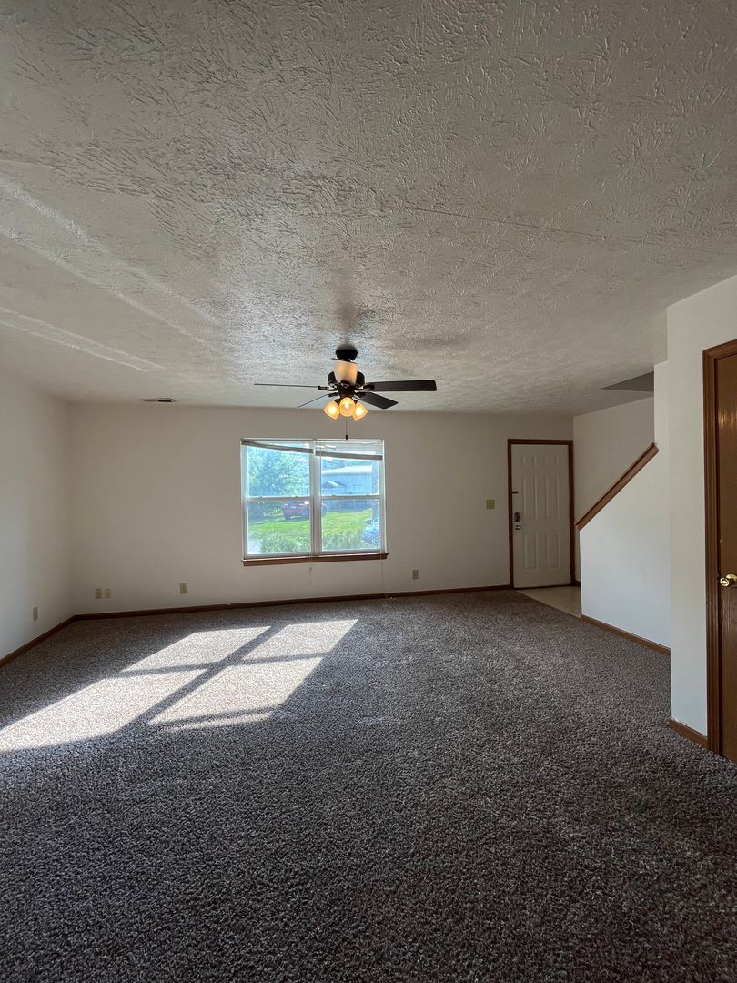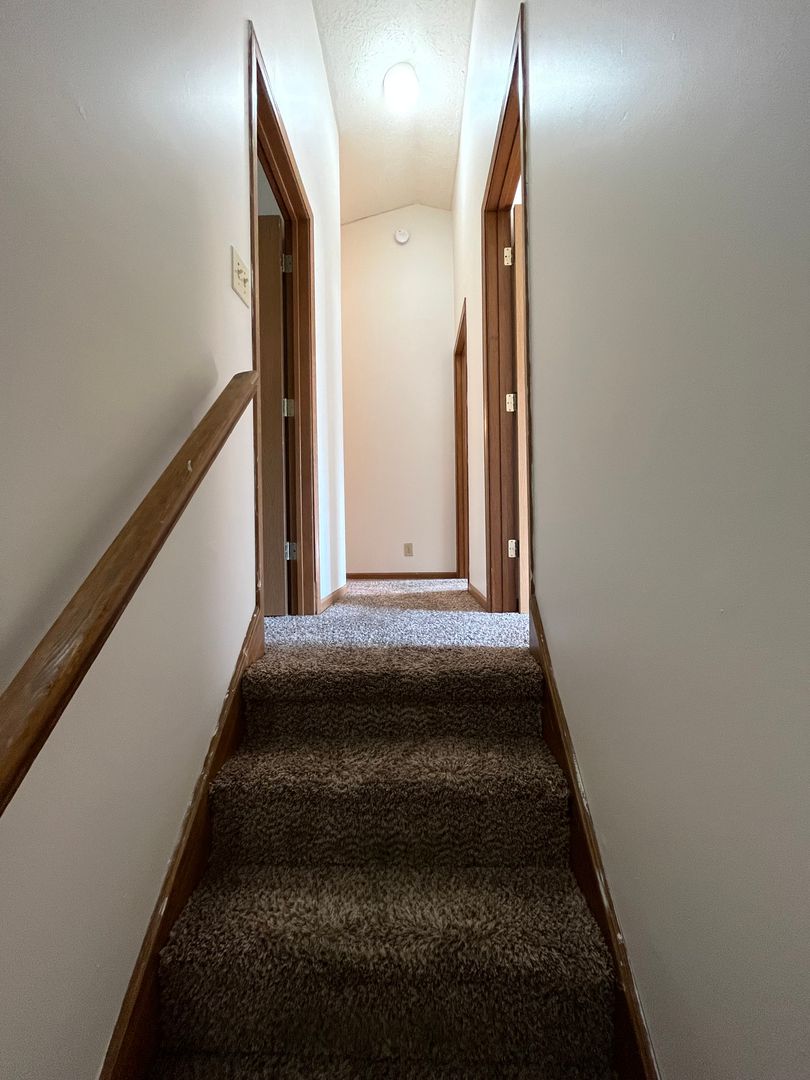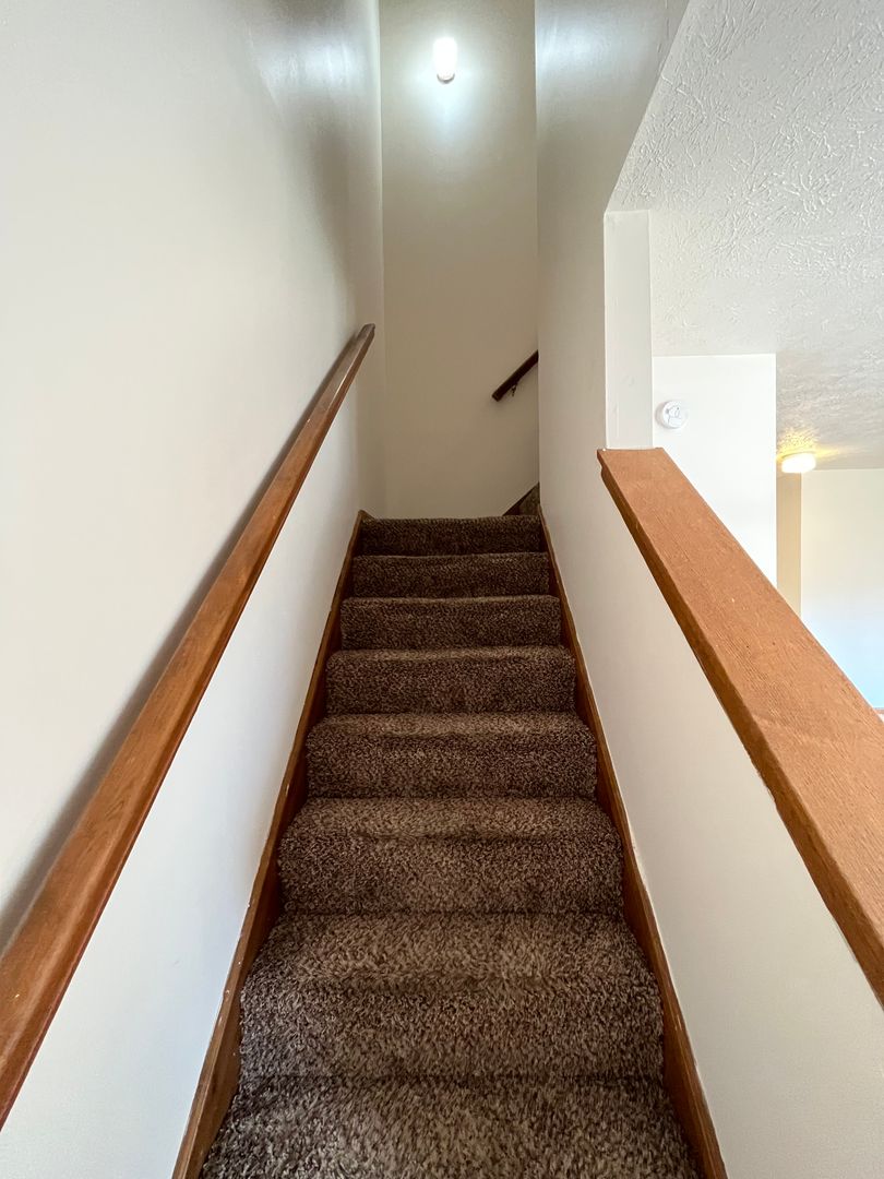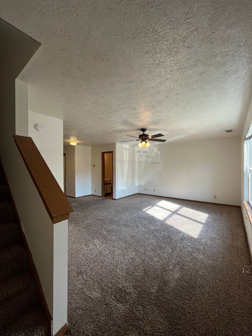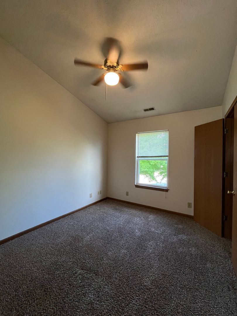 This unit features a large living room and kitchen as well as a 1/2 bath and laundry room on the main level. Upstairs there are three bedrooms with vaulted ceilings and two full bathrooms with a dual vanity. This unit has a private patio, central heating and air conditioning, and a kitchen with a fridge, stove, microwave, dishwasher, and garbage disposal.