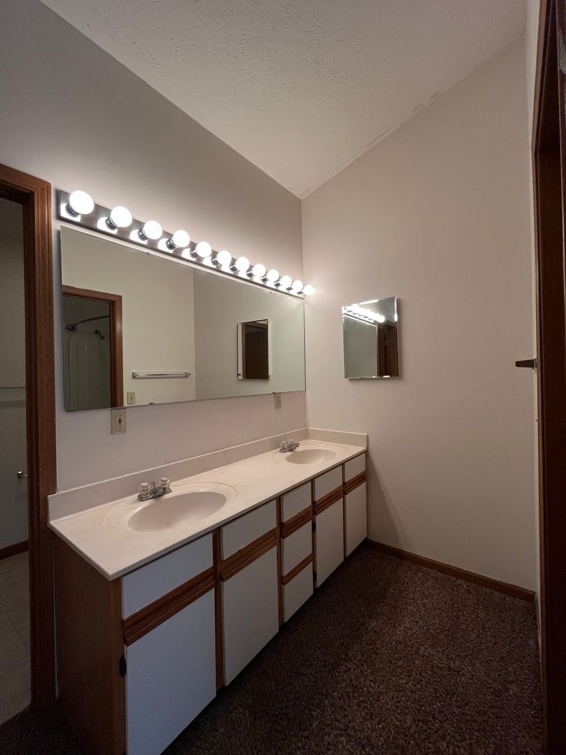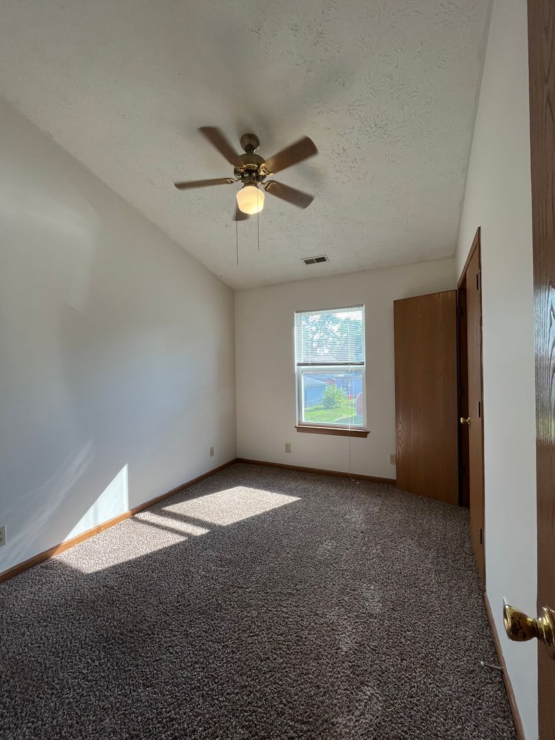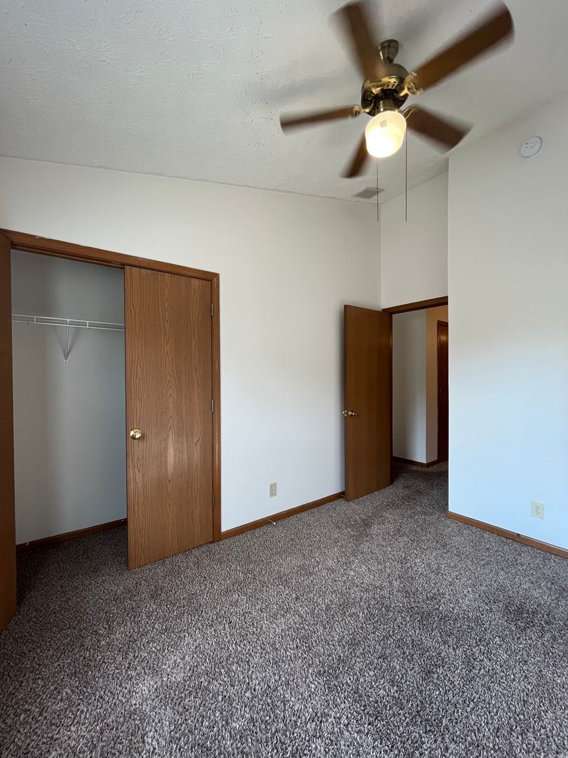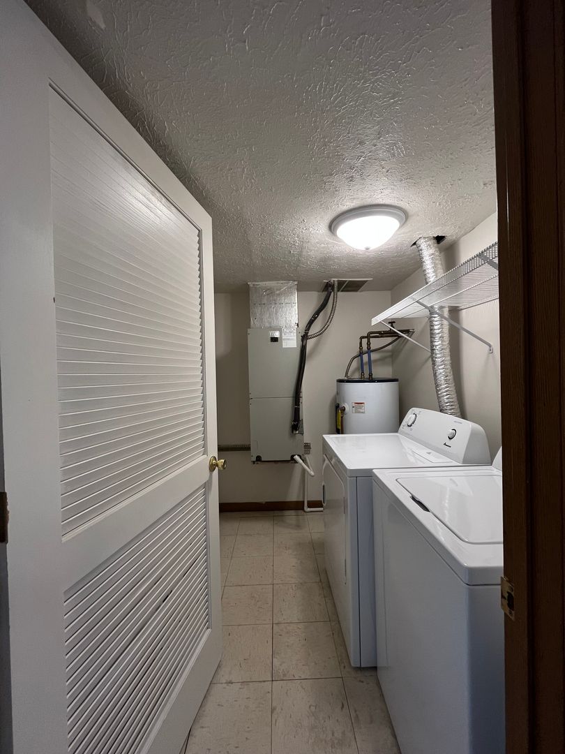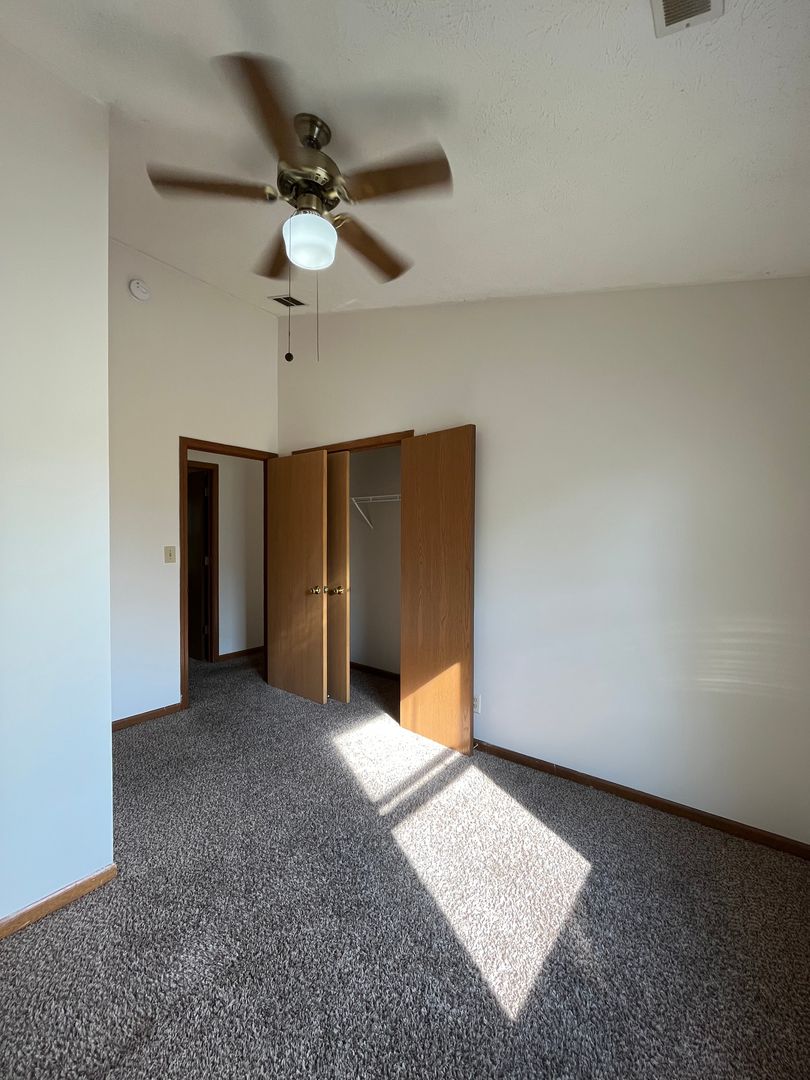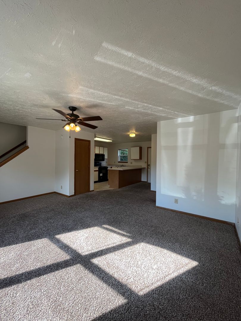 This unit features a large living room and kitchen as well as a 1/2 bath and laundry room on the main level. Upstairs there are three bedrooms with vaulted ceilings and two full bathrooms with a dual vanity. This unit has a private patio, central heating and air conditioning, and a kitchen with a fridge, stove, microwave, dishwasher, and garbage disposal.