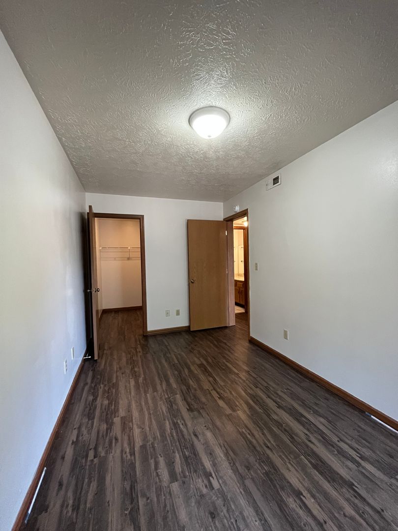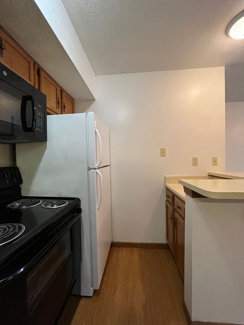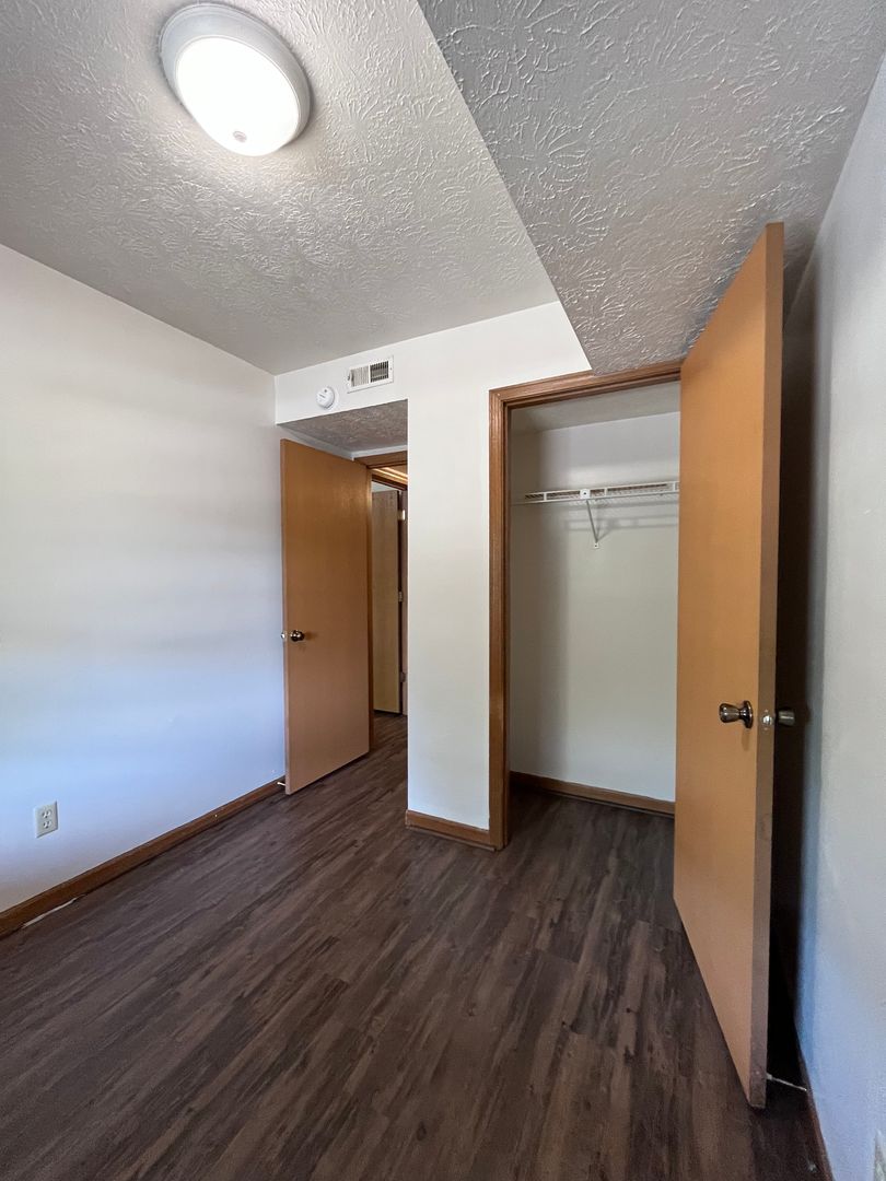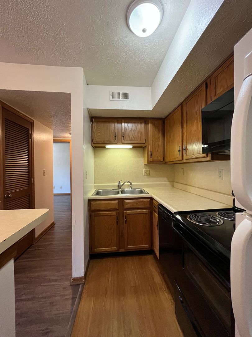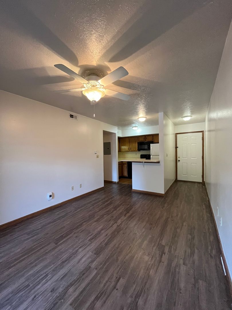 This two bed one bath unit has a fully equipped kitchen, spacious living room, and large storage closet.