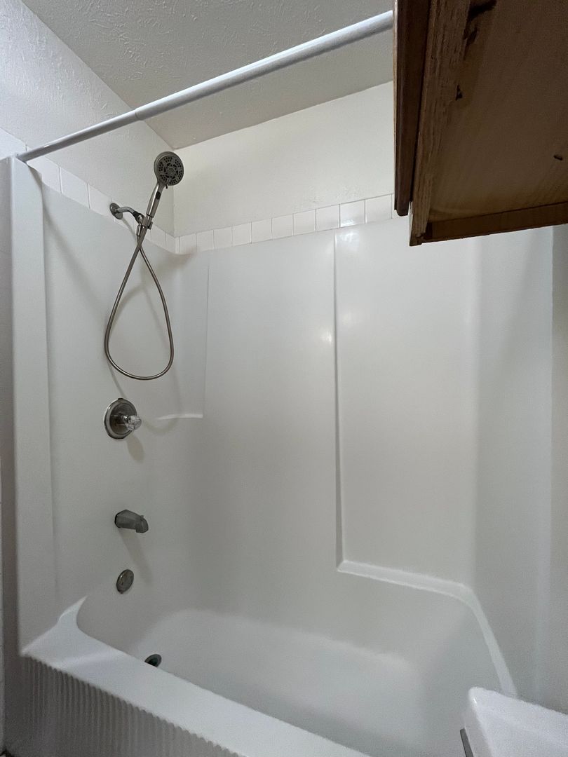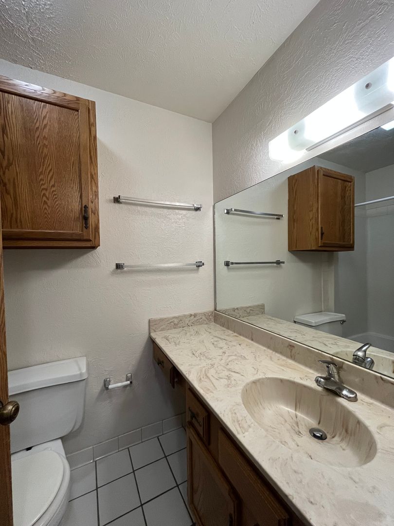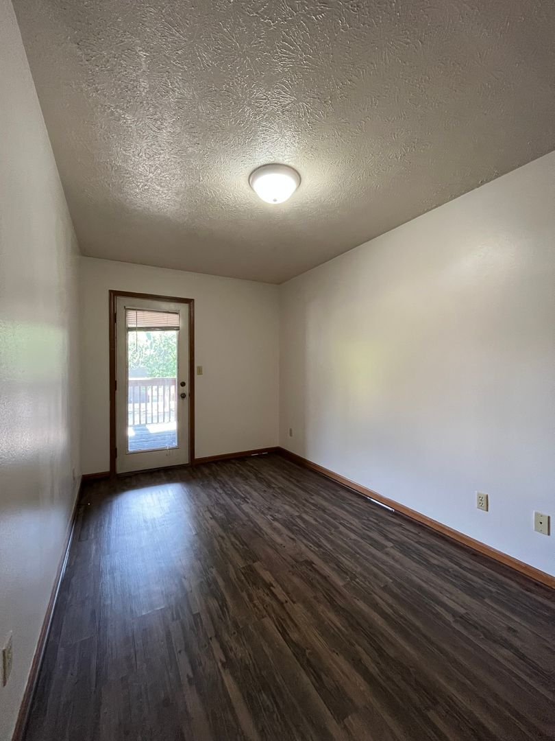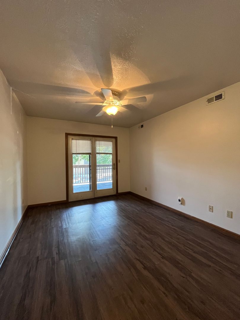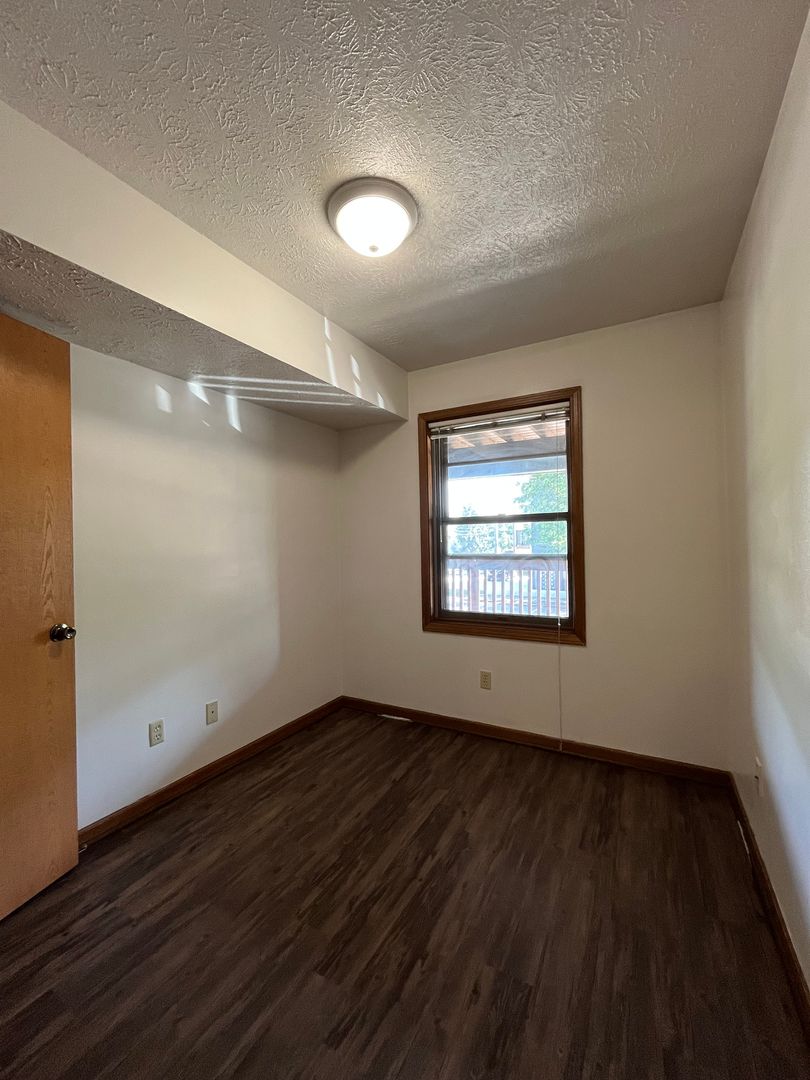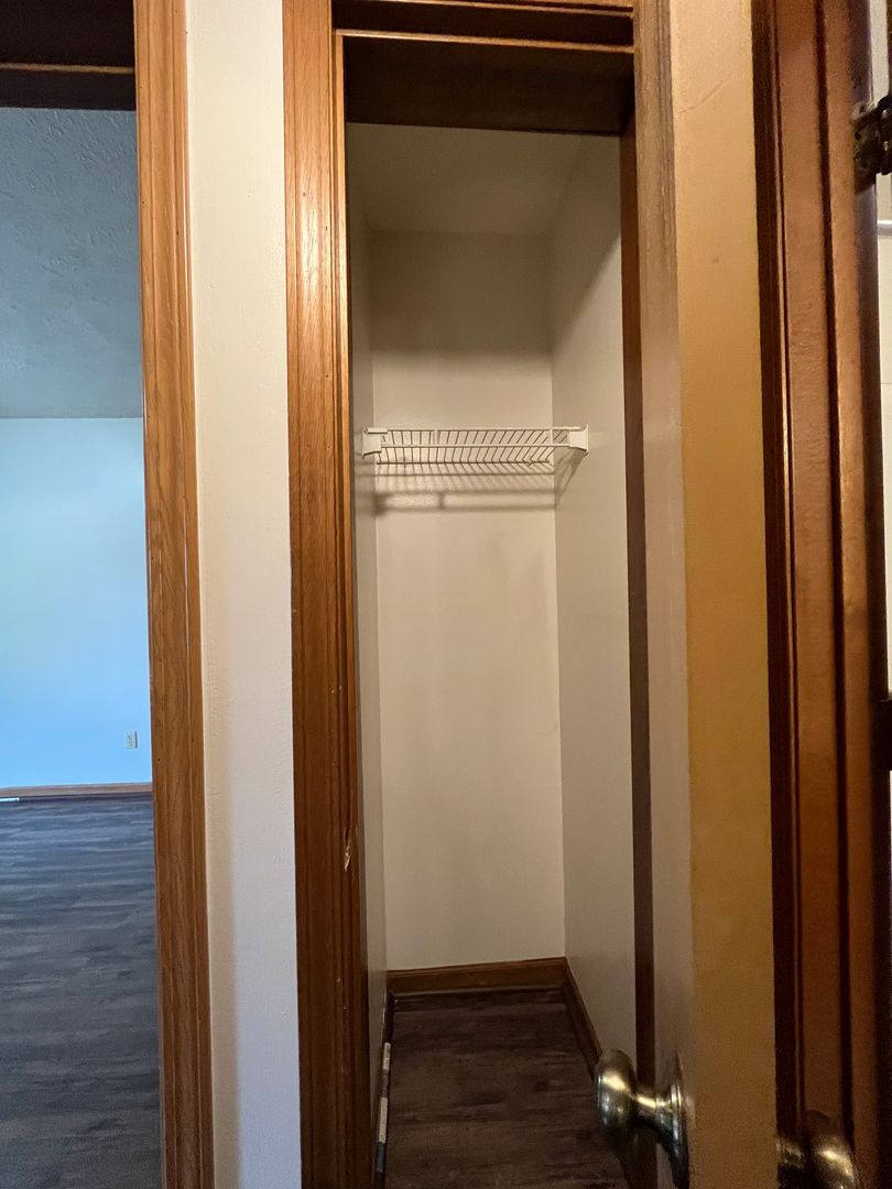 This two bed one bath unit has a fully equipped kitchen, spacious living room, and large storage closet.