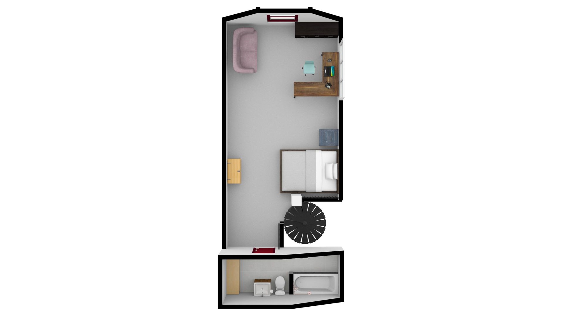This spacious lofted one bed, one bath unit features a spiral staircase and bay windows. This apartment is also convenient to all of the attractions in downtown Lafayette.