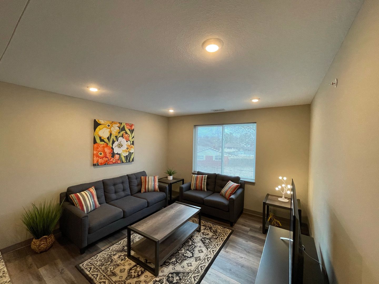 Enjoy your private bedroom & bathroom in the Quad! Upon entering, you will be impressed with the modern features and a completely furnished common area. Kitchens are fully equipped with electric range-oven, dishwasher, fridge, and garbage disposal. Furnishing includes a full bed and bed frame, under-bed storage, sofa/couch, a 55” smart TV, and other furnishings.