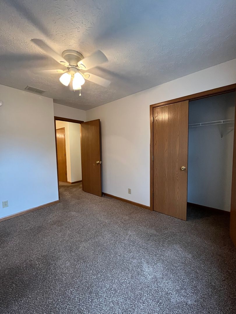 This unit features a large living room and kitchen as well as a 1/2 bath and laundry room on the main level. Upstairs there are three bedrooms with vaulted ceilings and two full bathrooms with a dual vanity. This unit has a backyard patio, central heating and air conditioning, and a kitchen with a fridge, stove, microwave, dishwasher, and garbage disposal.
