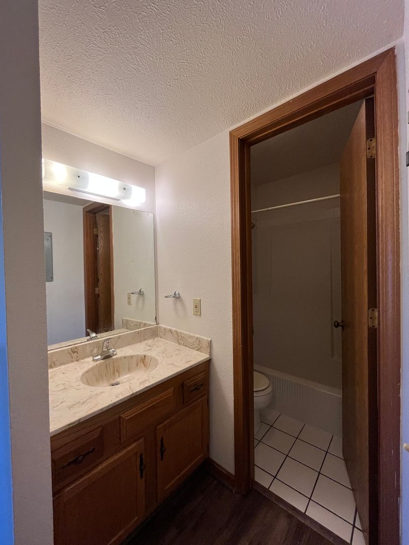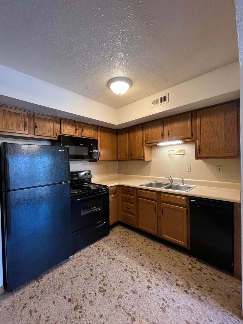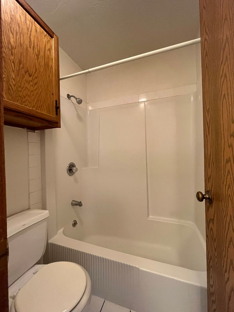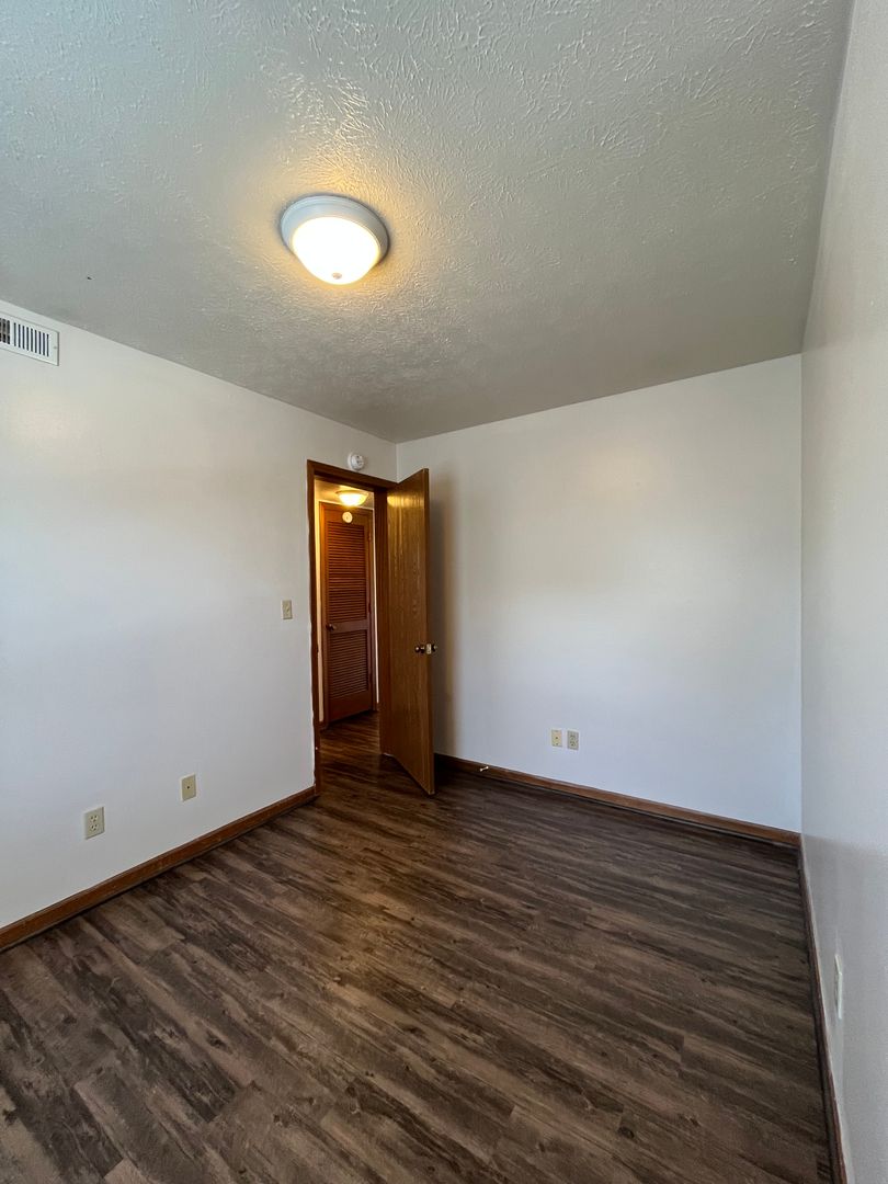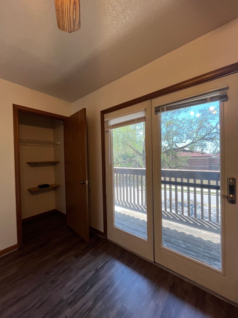 This two bed one bath unit has a fully equipped kitchen, spacious living room, and large storage closet.