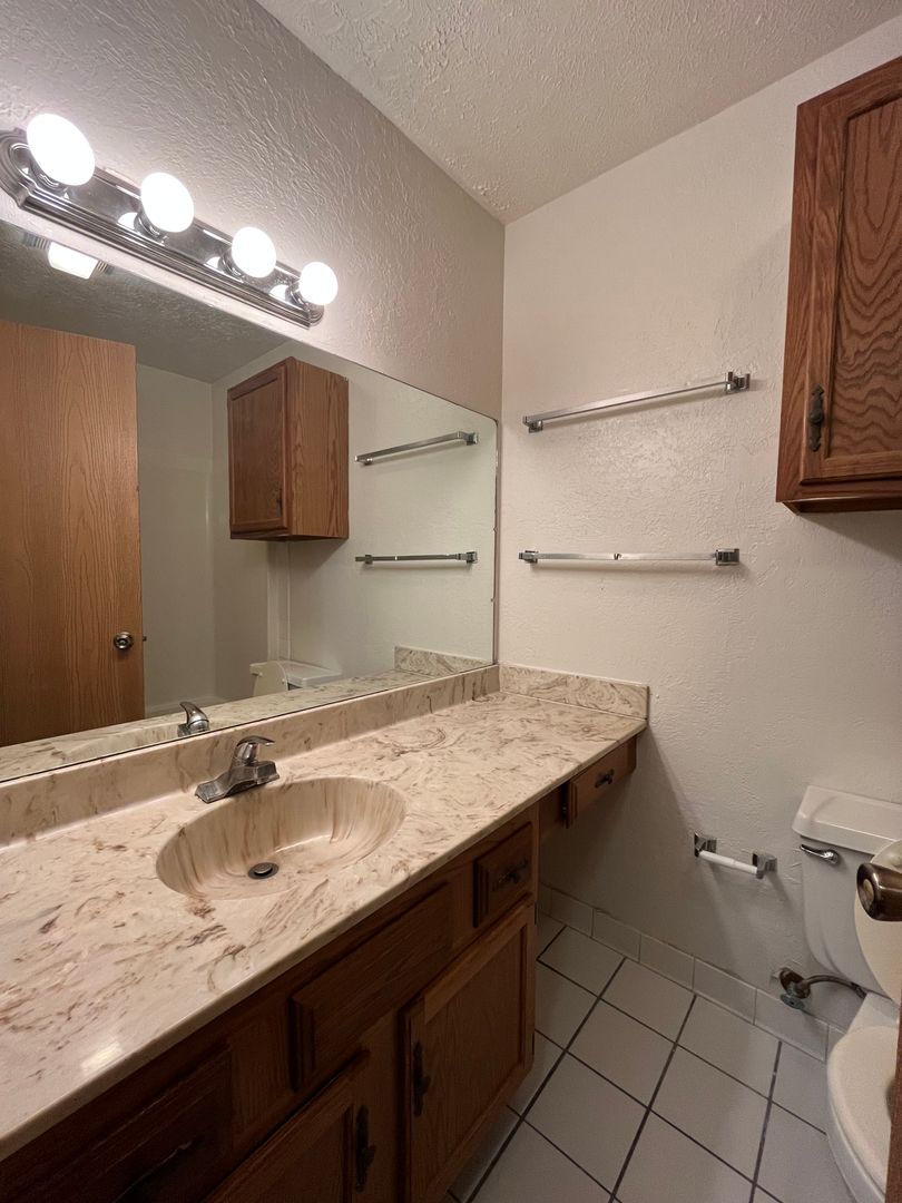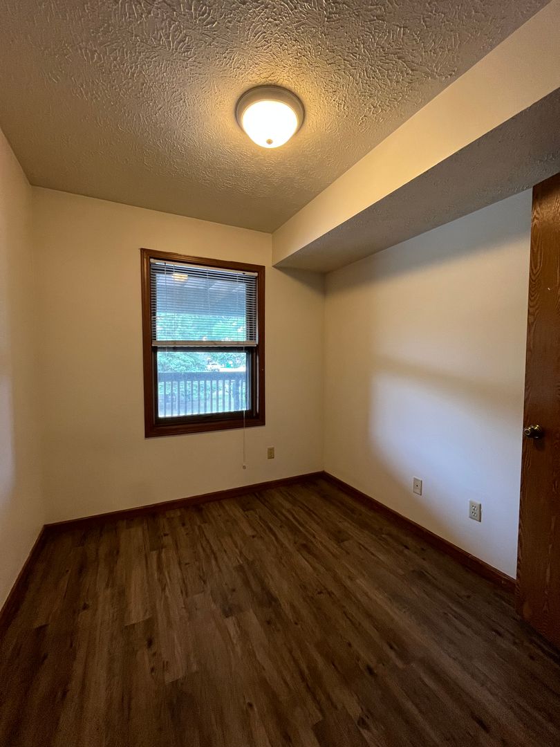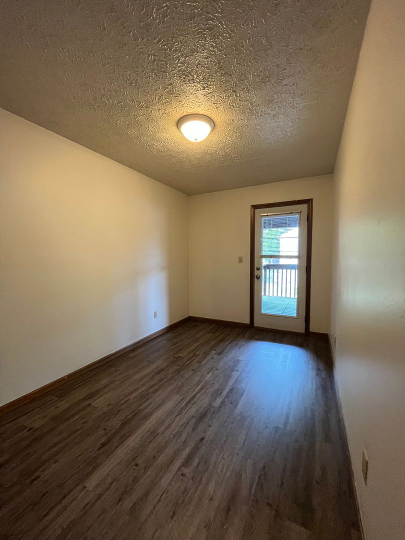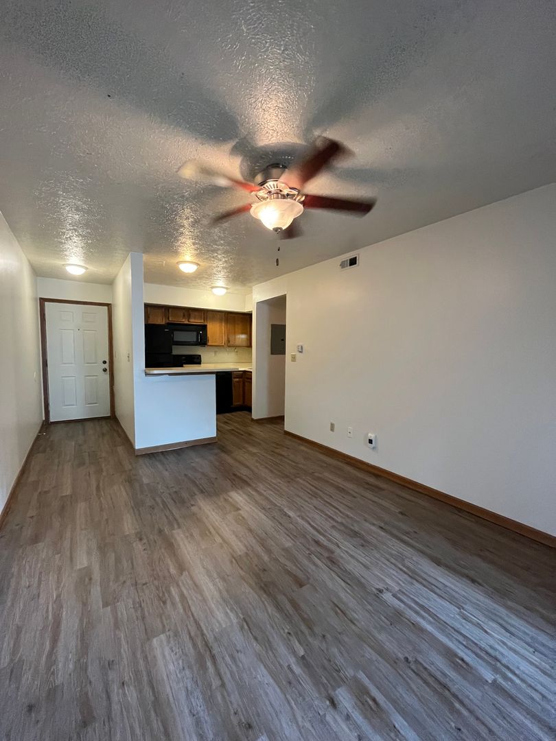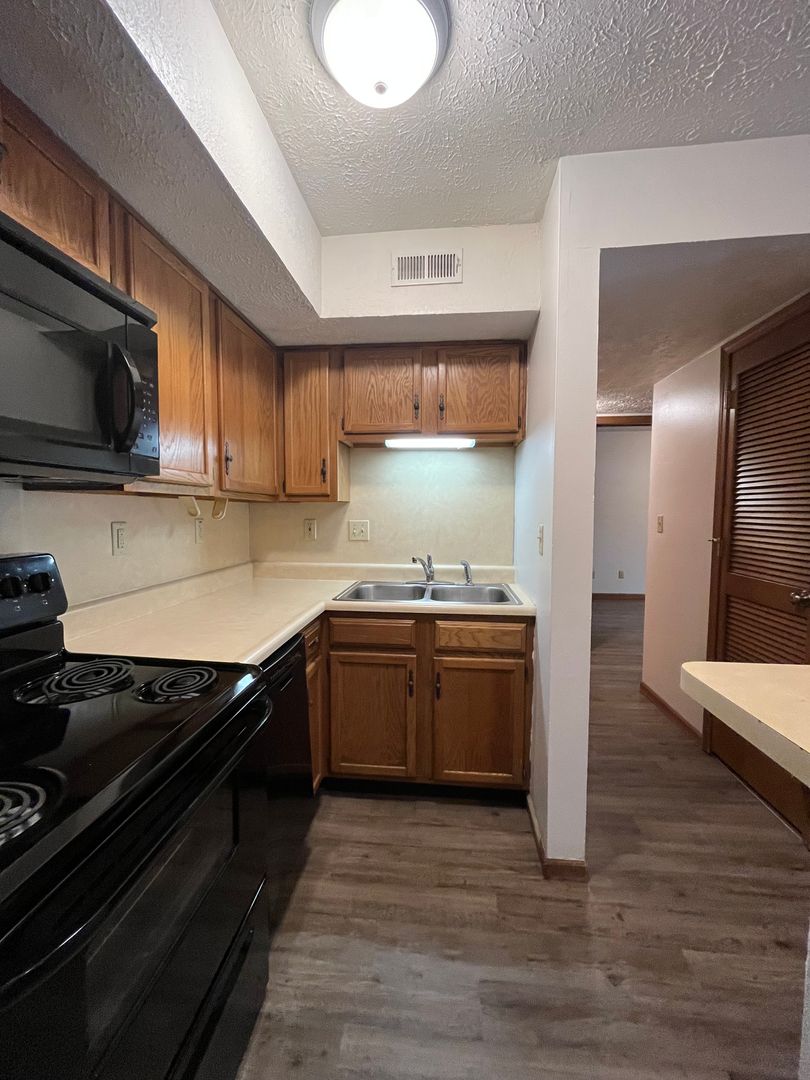 This two bed one bath unit has a fully equipped kitchen, spacious living room, and large storage closet.