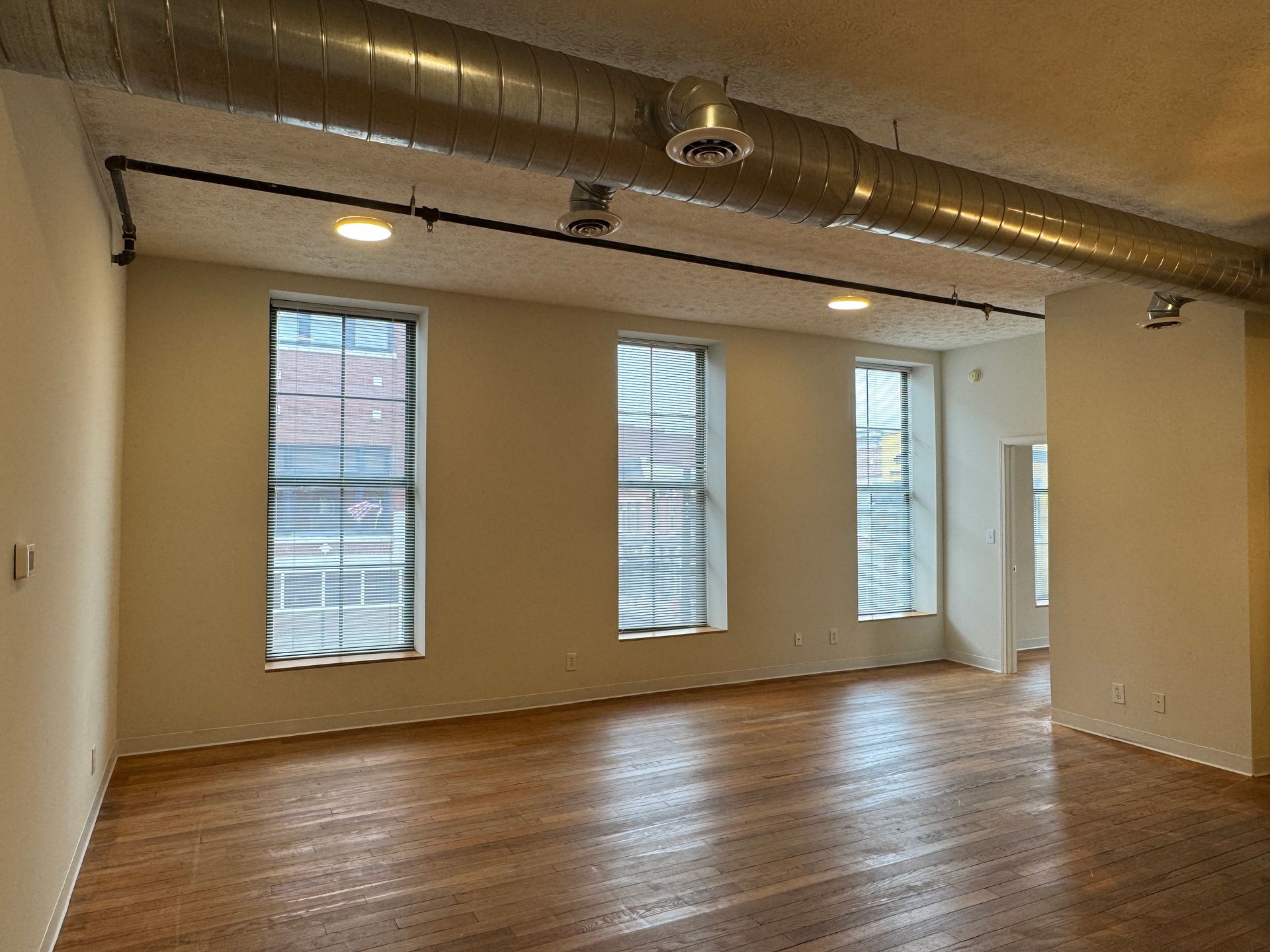 Welcome to your new loft apartment in Lafayette, IN, where modern convenience meets timeless style. This apartment boasts a fully equipped kitchen, complete with sleek stainless steel appliances, ready to inspire your culinary adventures. The in-unit washer and dryer add to the convenience, making laundry day a breeze. The central heat and air conditioning ensure your comfort throughout the seasons. The apartment's interior is accentuated by high ceilings and large windows, allowing for an abundance of natural light and a sense of spaciousness. The wood flooring adds a touch of elegance and warmth to the space. Plus, the soft water service ensures a luxurious experience in your daily routines. Located on Main Street in Downtown Lafayette, you'll have easy access to a variety of dining, shopping, and entertainment options. Experience the perfect blend of comfort and convenience in this Lafayette apartment.