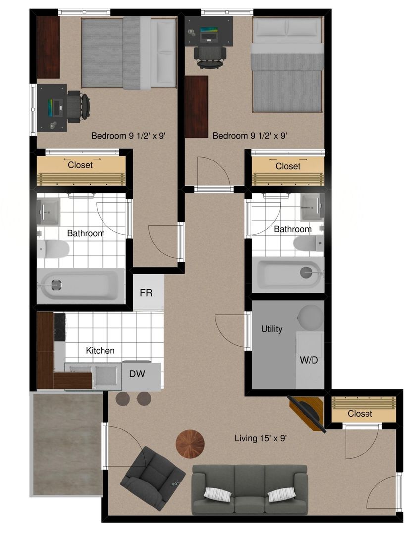 These units feature 9ft ceilings, covered balconies, and in unit washer and dryer. The kitchen is equipped with a fridge, stove, microwave, dishwasher, and garbage disposal.