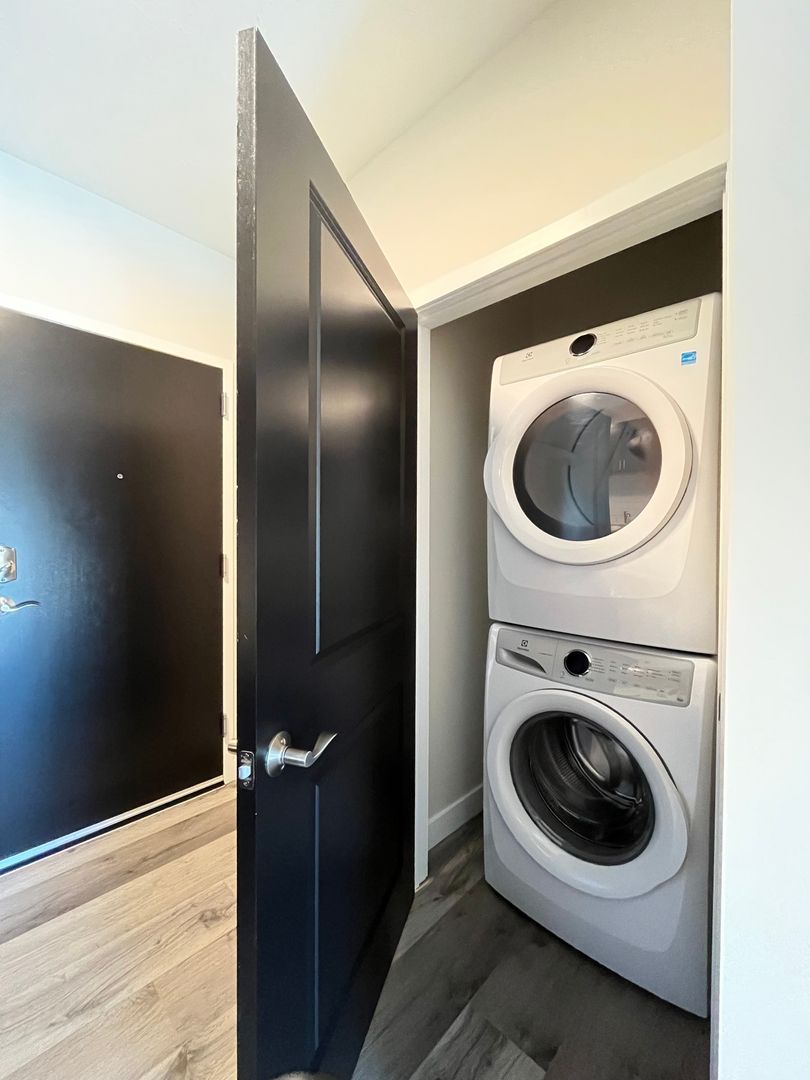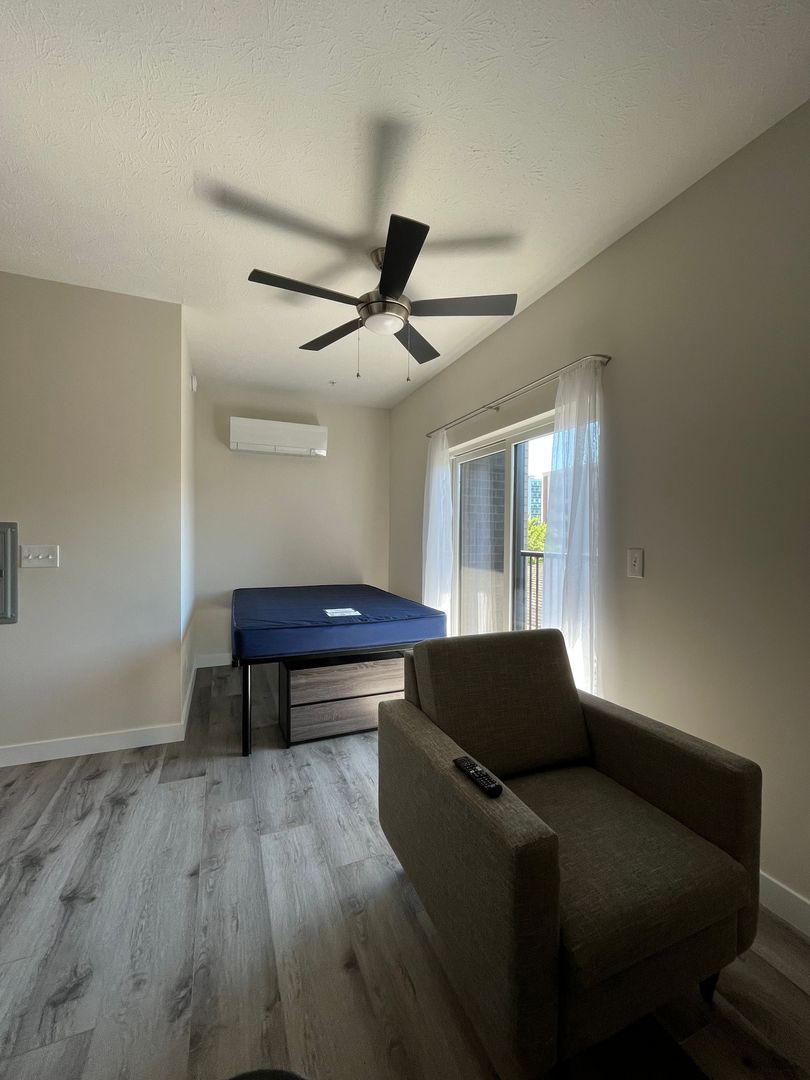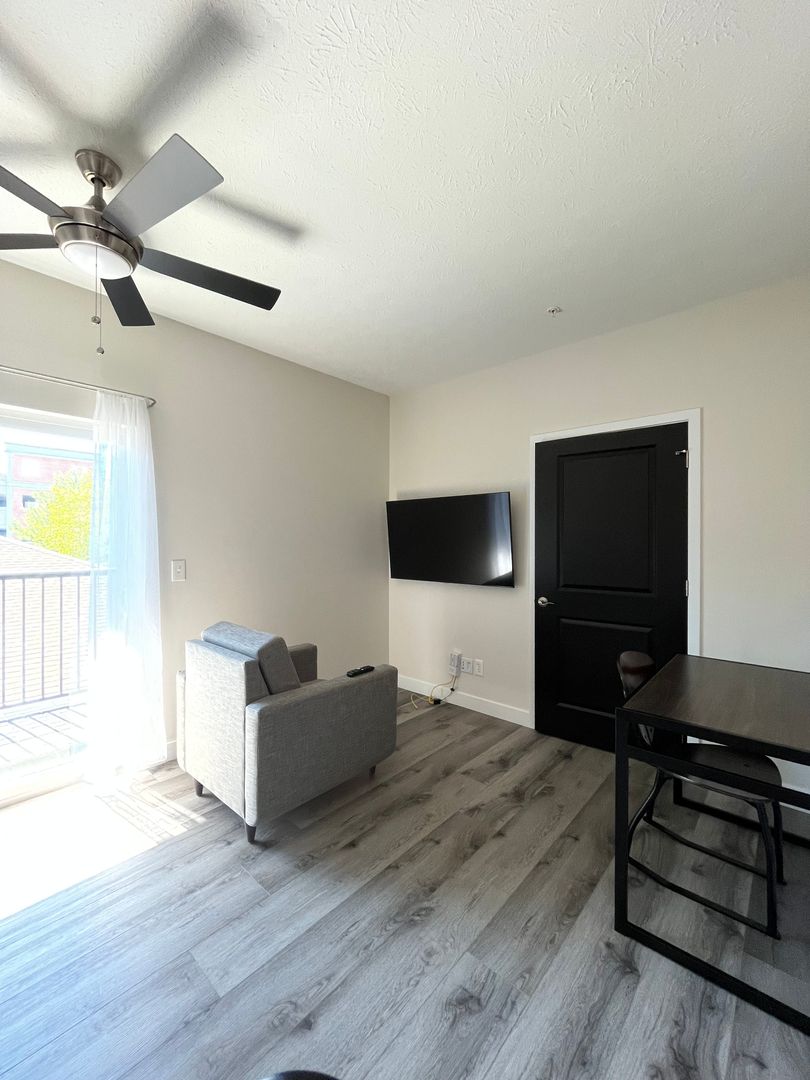 The new Cypress building has so much to offer! These apartments feature vinyl plank flooring, 9ft ceilings, LED light fixtures, in unit washer/dryer, and furnished options. Live close to campus, bars, restaurants, entertainment, and more! Apartments are equipped with a sofa, full bed, dresser, desk, desk chair, 50" smart TV, multi-purpose table and chairs. Kitchens are fully equipped with stainless steel appliances. Select units have covered balconies. Enjoy building amenities like an exercise room that features cardio and weight resistance equipment or our cozy lounge that is equipped with a fireplace, TV, study booths, and game tables! Other property features include a garage parking, elevator, secured entry with video surveillance, and trash chute. Utilities covered in rent are water, sewer, and trash.