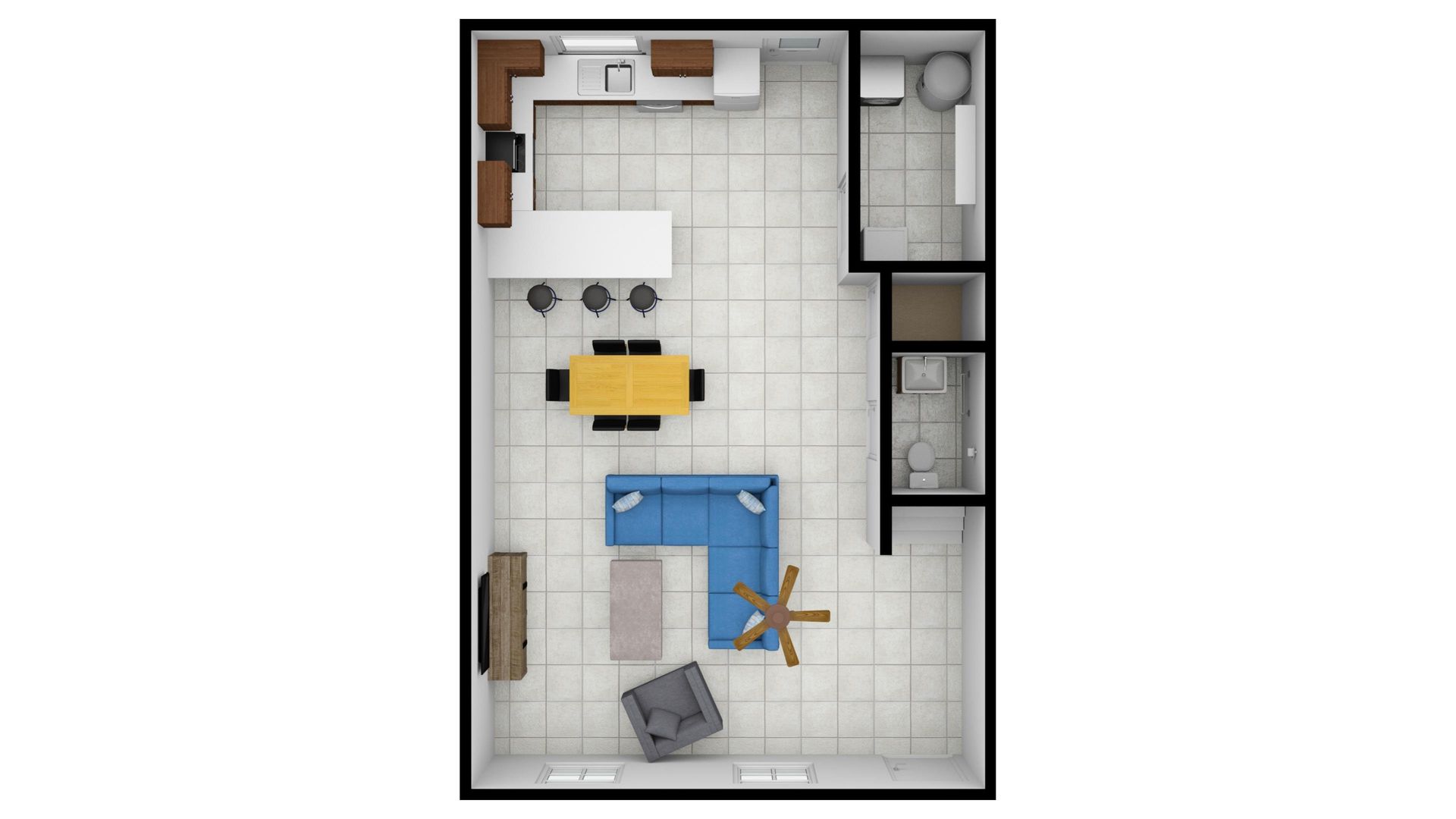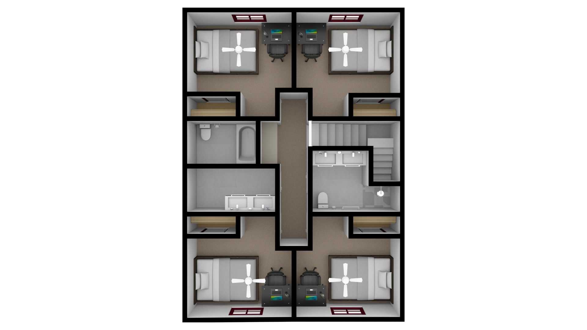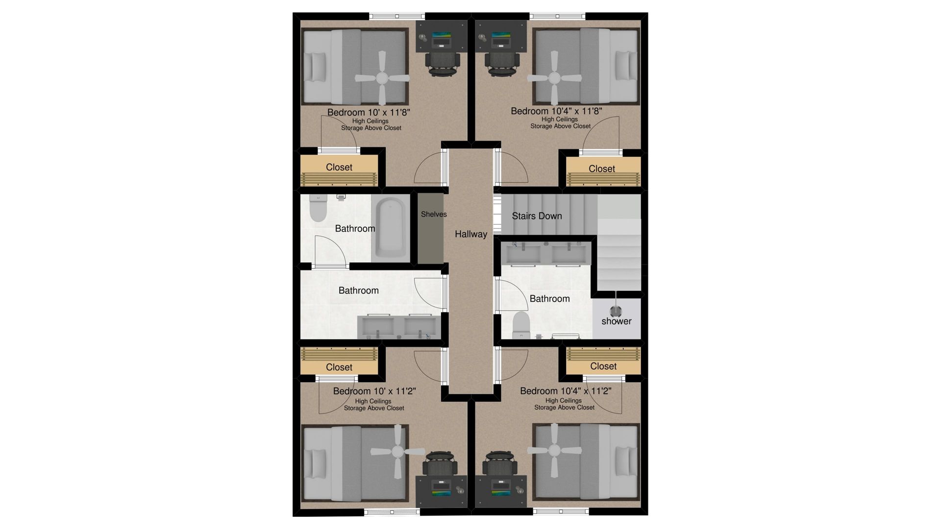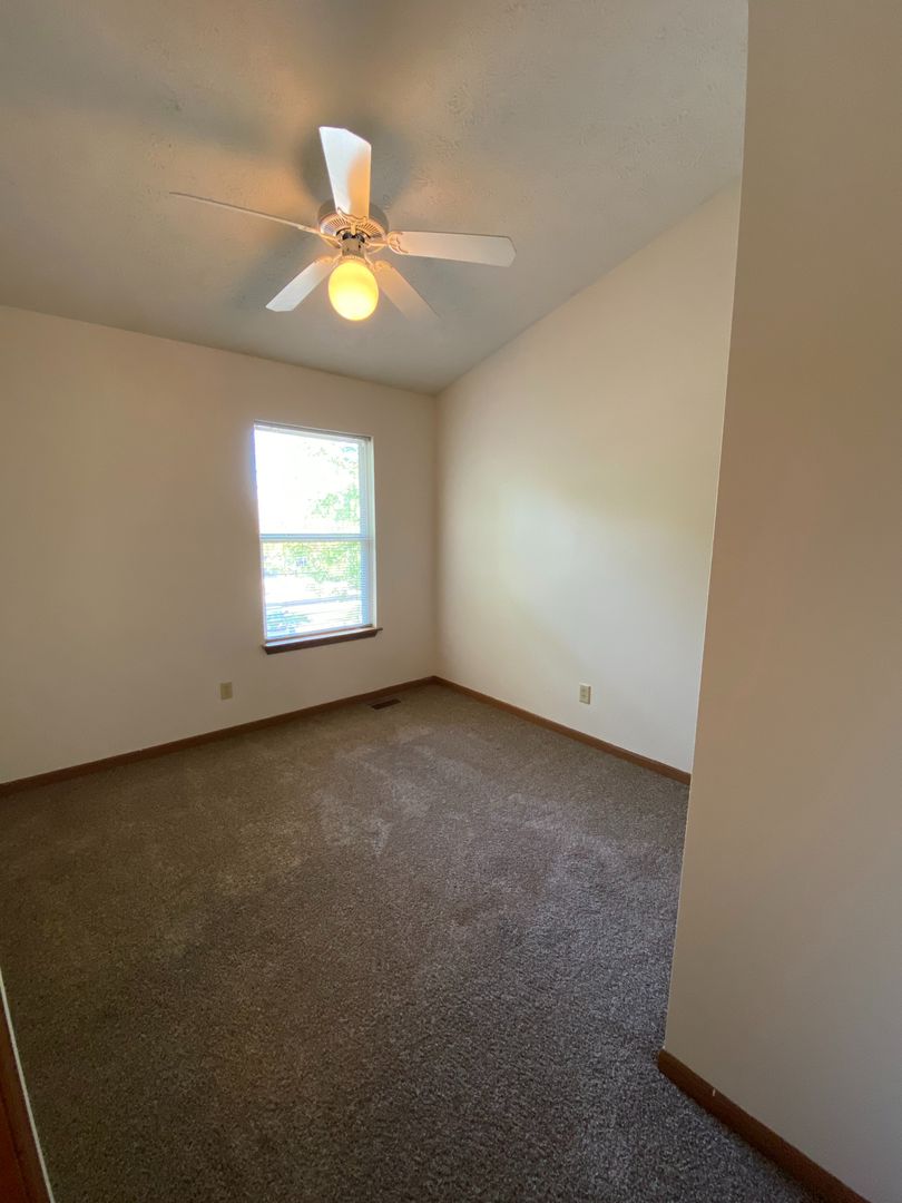 This unit features an open living room and kitchen as well as a 1/2 bath and laundry room on the main level. Upstairs has 4 equal sized bedrooms with lofted storage space and two full bathrooms. The unit features a covered front porch, central heating and air conditioning, and electronic keys. The kitchen is equipped with a fridge, stove, microwave, dishwasher, and garbage disposal.