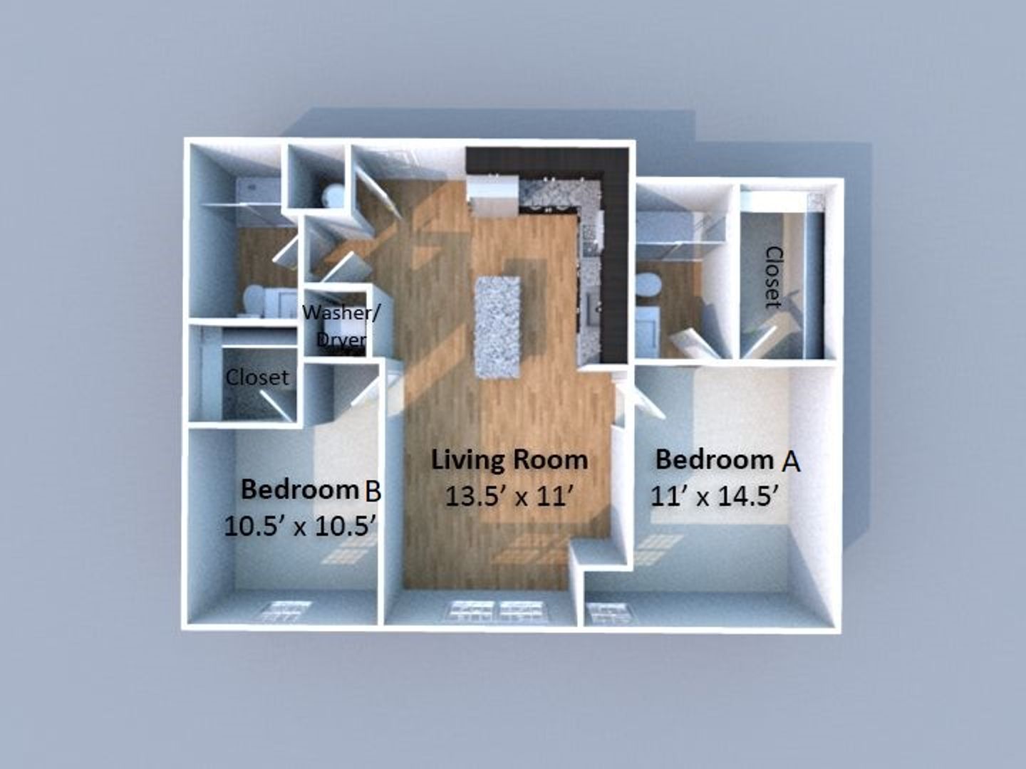 '13 Floorplan - 2 Bedroom 2 Bathroom Apartment in Lafayette