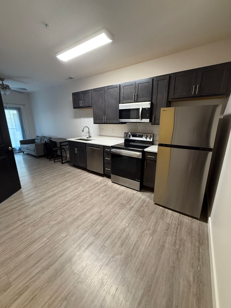 The new Monterey building has so much to offer! These apartments feature vinyl plank flooring, 9ft ceilings, LED light fixtures, in unit washer/dryer, and furnished options. Live close to campus, bars, restaurants, entertainment, and more! Apartments are equipped with a sofa, full bed, dresser, desk, desk chair, 50" smart TV, multi-purpose table and chairs. Kitchens are fully equipped with stainless steel appliances. Select units have covered balconies. Other property features include a garage parking, elevator, secured entry with video surveillance, and trash chute. Utilities covered in rent are internet, water, sewer, and trash.