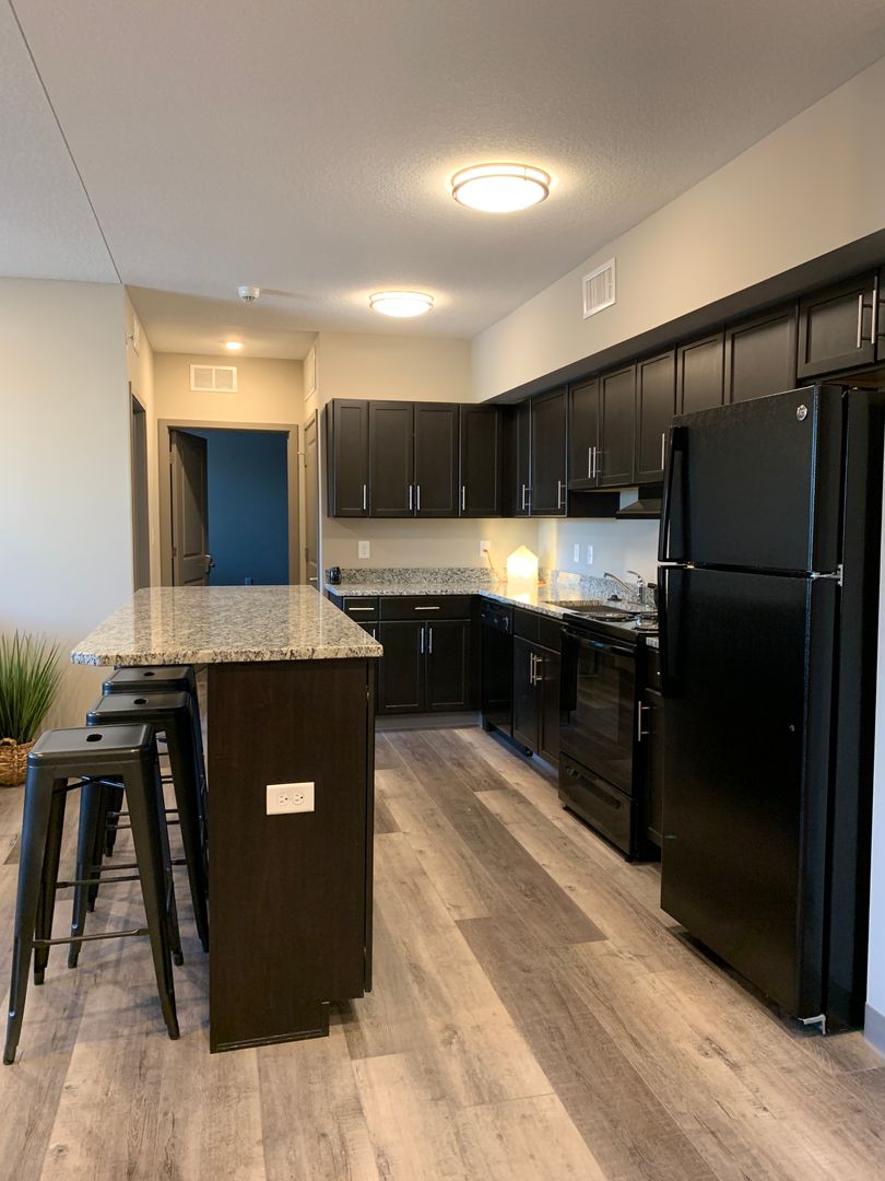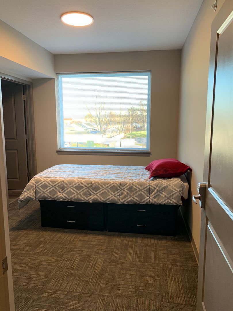 Enjoy your private bedroom & bathroom in the Quad! Upon entering, you will be impressed with the modern features and a completely furnished common area. Kitchens are fully equipped with electric range-oven, dishwasher, fridge, and garbage disposal. Furnishing includes a full bed and bed frame, under-bed storage, sofa/couch, a 55” smart TV, and other furnishings.