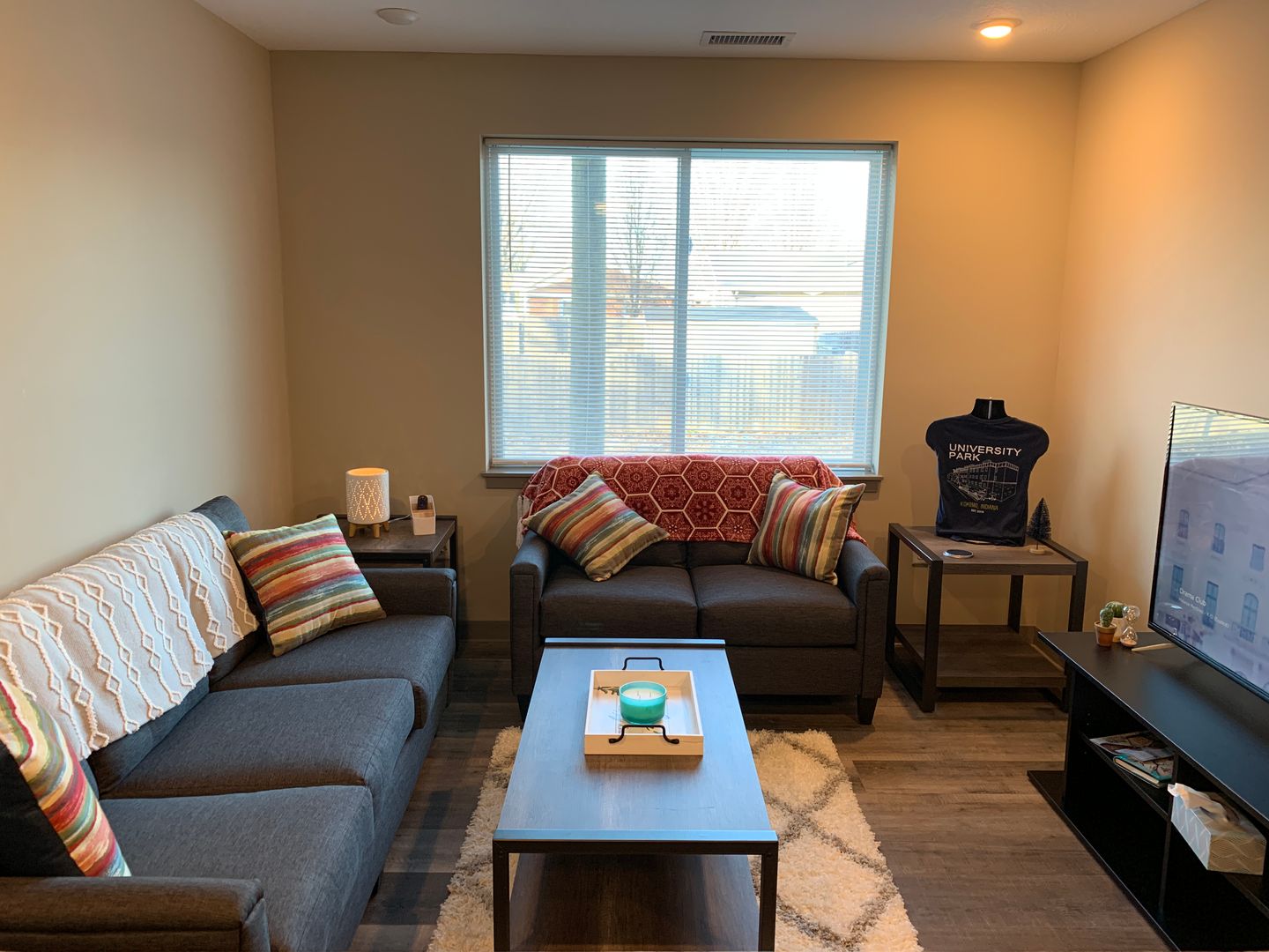 Enjoy your private bedroom & bathroom in the Duo! Upon entering, you will be impressed with the modern features and a completely furnished common area. Kitchens are fully equipped with electric range-oven, dishwasher, fridge, and garbage disposal. Furnishing includes a full bed and bed frame, under-bed storage, sofa/couch, a 55” smart TV, and other furnishings.