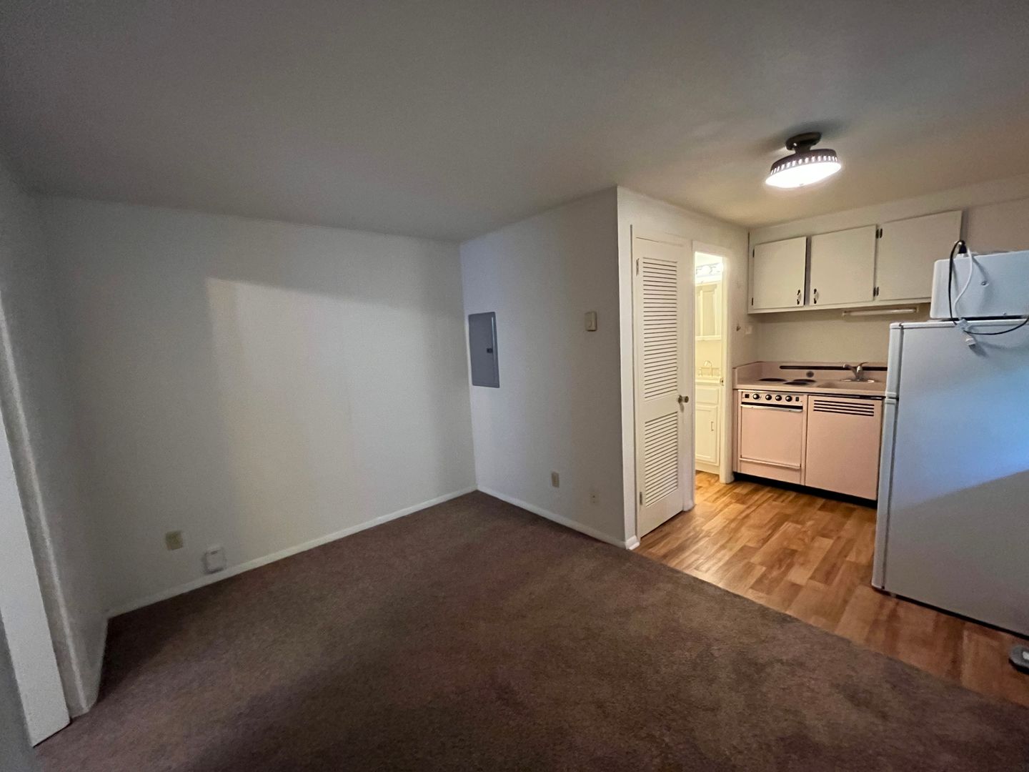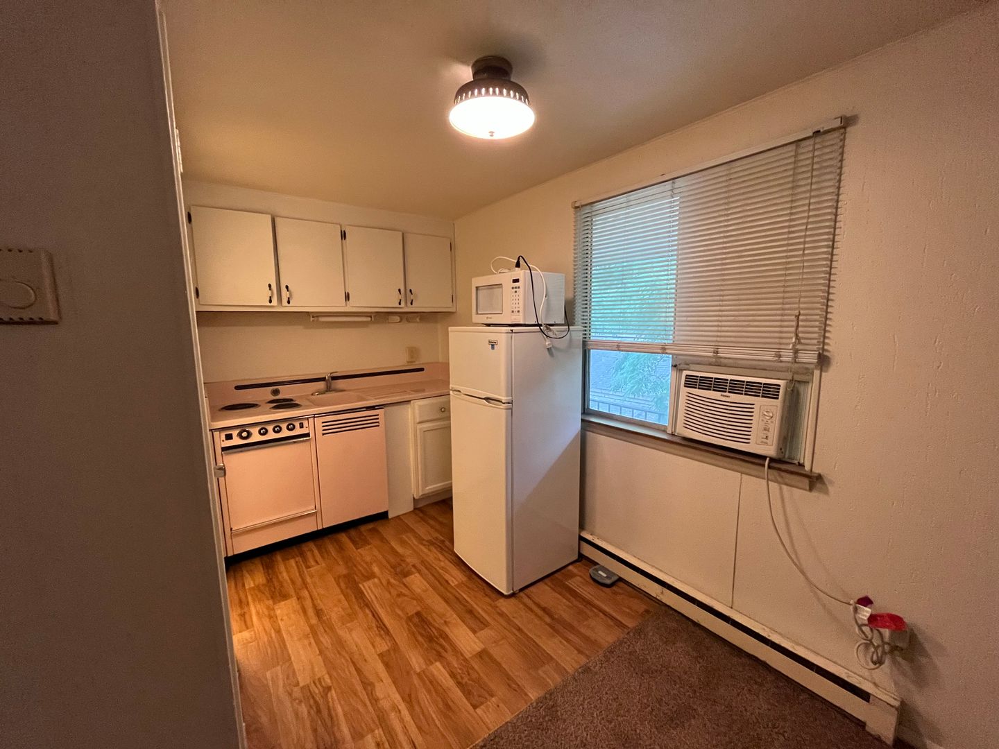 These 1 bed 1 bath apartments have a built-in dresser in the bedroom flanked by a closet on either side. Comfortable living room with air-conditioning and a fully equipped kitchen. Laundry room available just across the street.