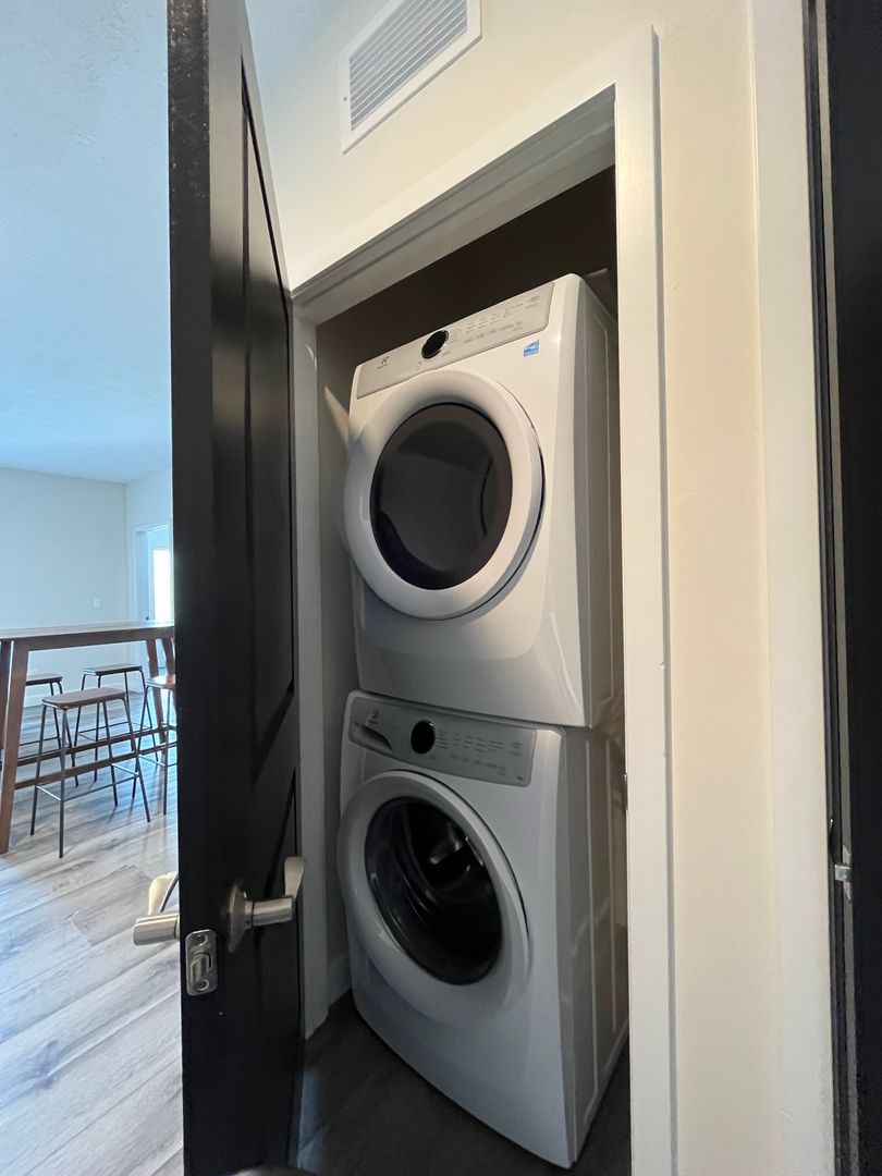 The new Cypress building has so much to offer! These apartments feature vinyl plank flooring, 9ft ceilings, LED light fixtures, in unit washer/dryer, and furnished options. Live close to campus, bars, restaurants, entertainment, and more! Apartments are equipped with a sofa, full bed, dresser, desk, desk chair, 50" smart TV, multi-purpose table and chairs. Kitchens are fully equipped with stainless steel appliances. Select units have covered balconies. Enjoy building amenities like an exercise room that features cardio and weight resistance equipment or our cozy lounge that is equipped with a fireplace, TV, study booths, and game tables! Other property features include a garage parking, elevator, secured entry with video surveillance, and trash chute. Utilities covered in rent are water, sewer, and trash.