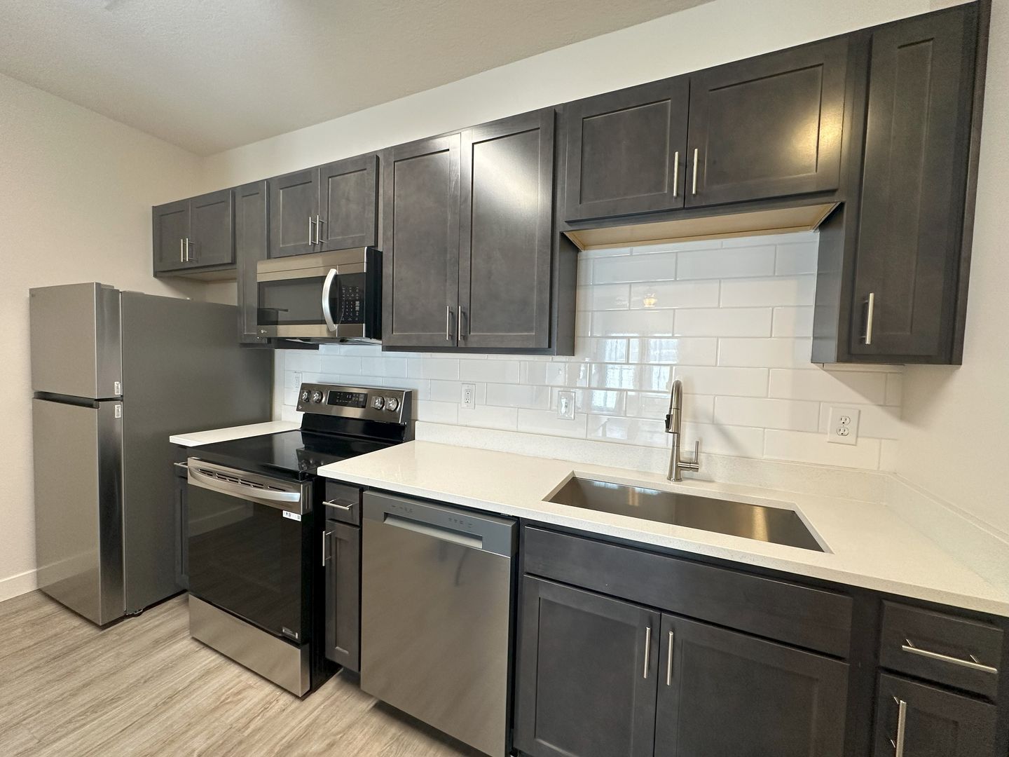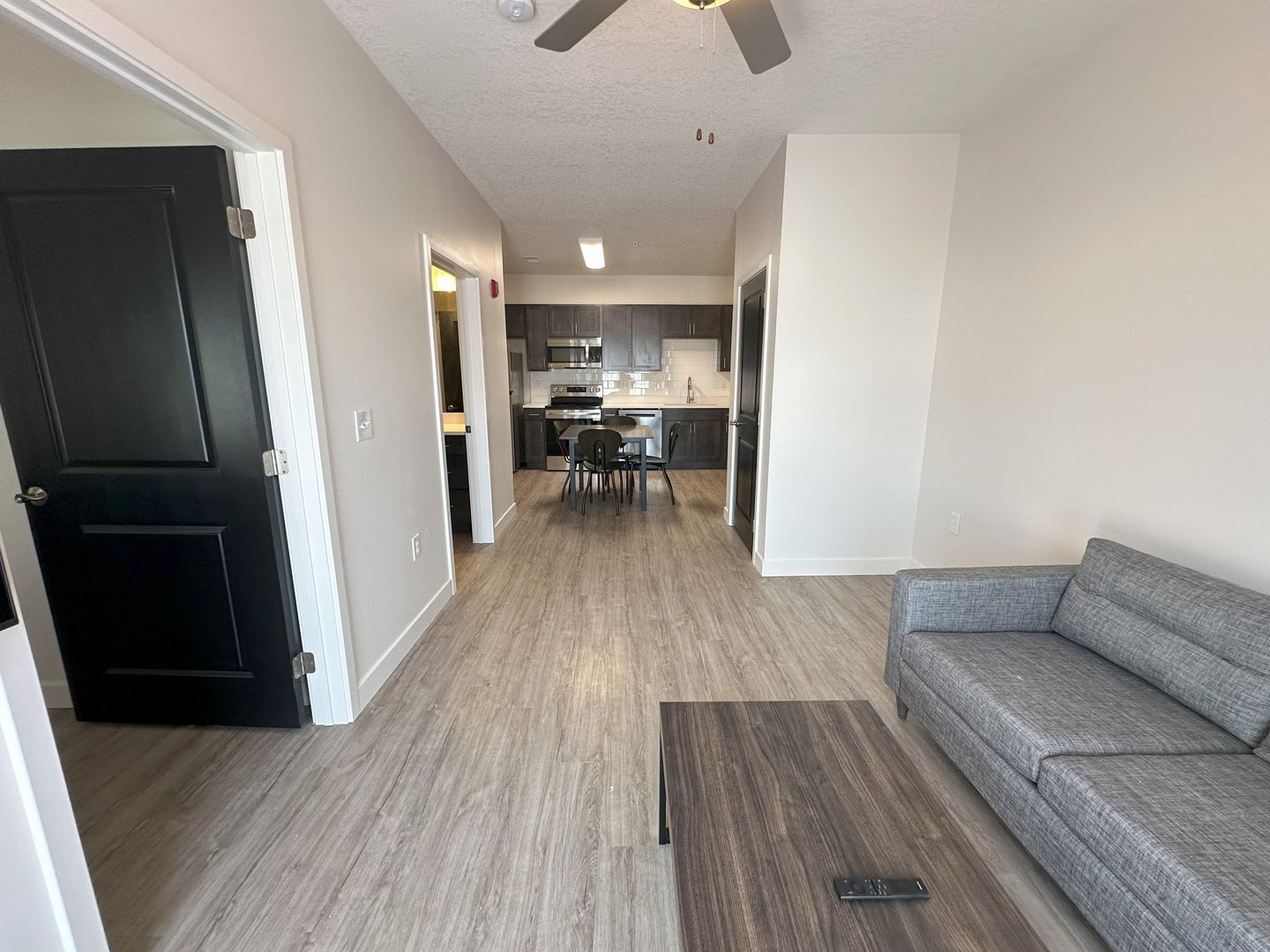 The new Monterey building has so much to offer! These apartments feature vinyl plank flooring, 9ft ceilings, LED light fixtures, in unit washer/dryer, and furnished options. Live close to campus, bars, restaurants, entertainment, and more! Apartments are equipped with a sofa, full bed, dresser, desk, desk chair, 50" smart TV, multi-purpose table and chairs. Kitchens are fully equipped with stainless steel appliances. Select units have covered balconies. Other property features include a garage parking, elevator, secured entry with video surveillance, and trash chute. Utilities covered in rent are internet, water, sewer, and trash.