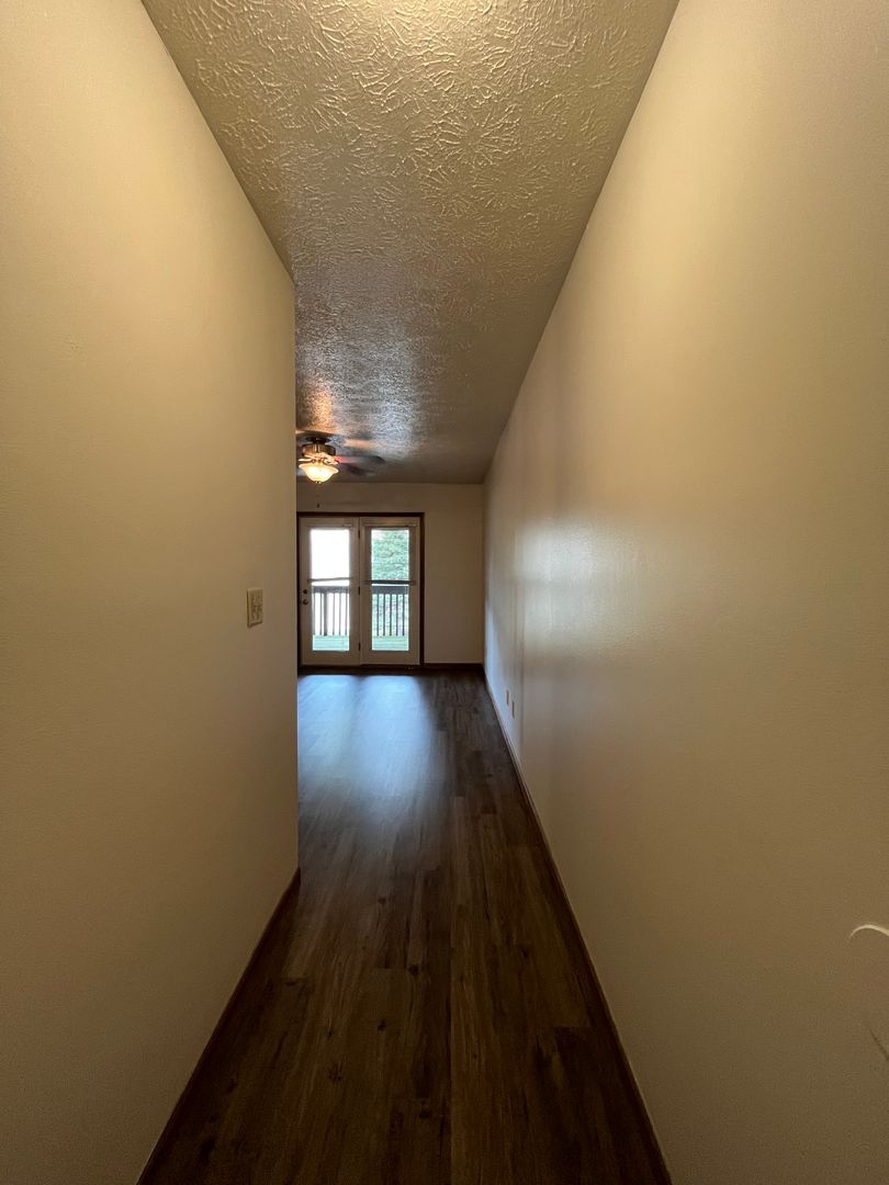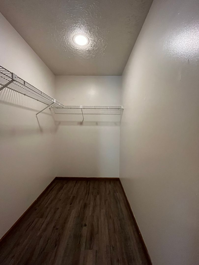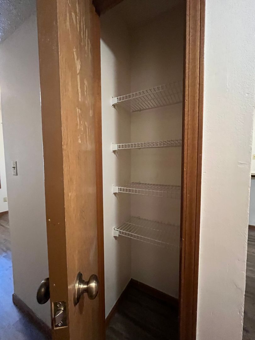 This two bed one bath unit has a fully equipped kitchen, spacious living room, and large storage closet.